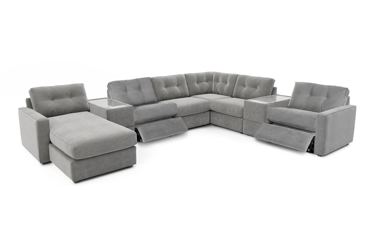 ModularOne Granite 8-Piece Power Reclining Sectional with Two E-Consoles & Left Arm Facing Chaise