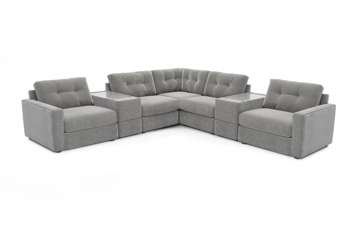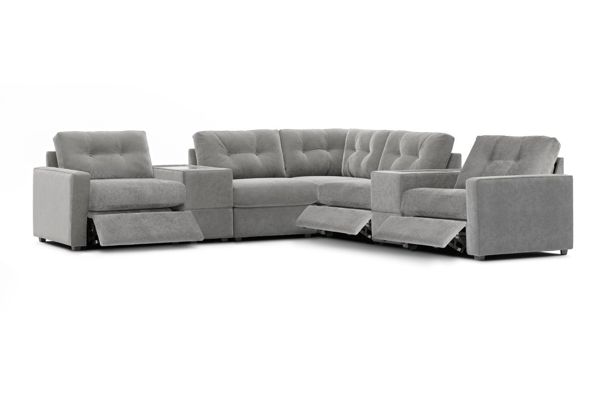 Included Pieces: LAF power reclining chair, media console, console, one armless chair, corner, armless recliner, and RAF power reclining chair.Visit a showroom to explore individual components and work with a sales specialist to configure your perfect design.