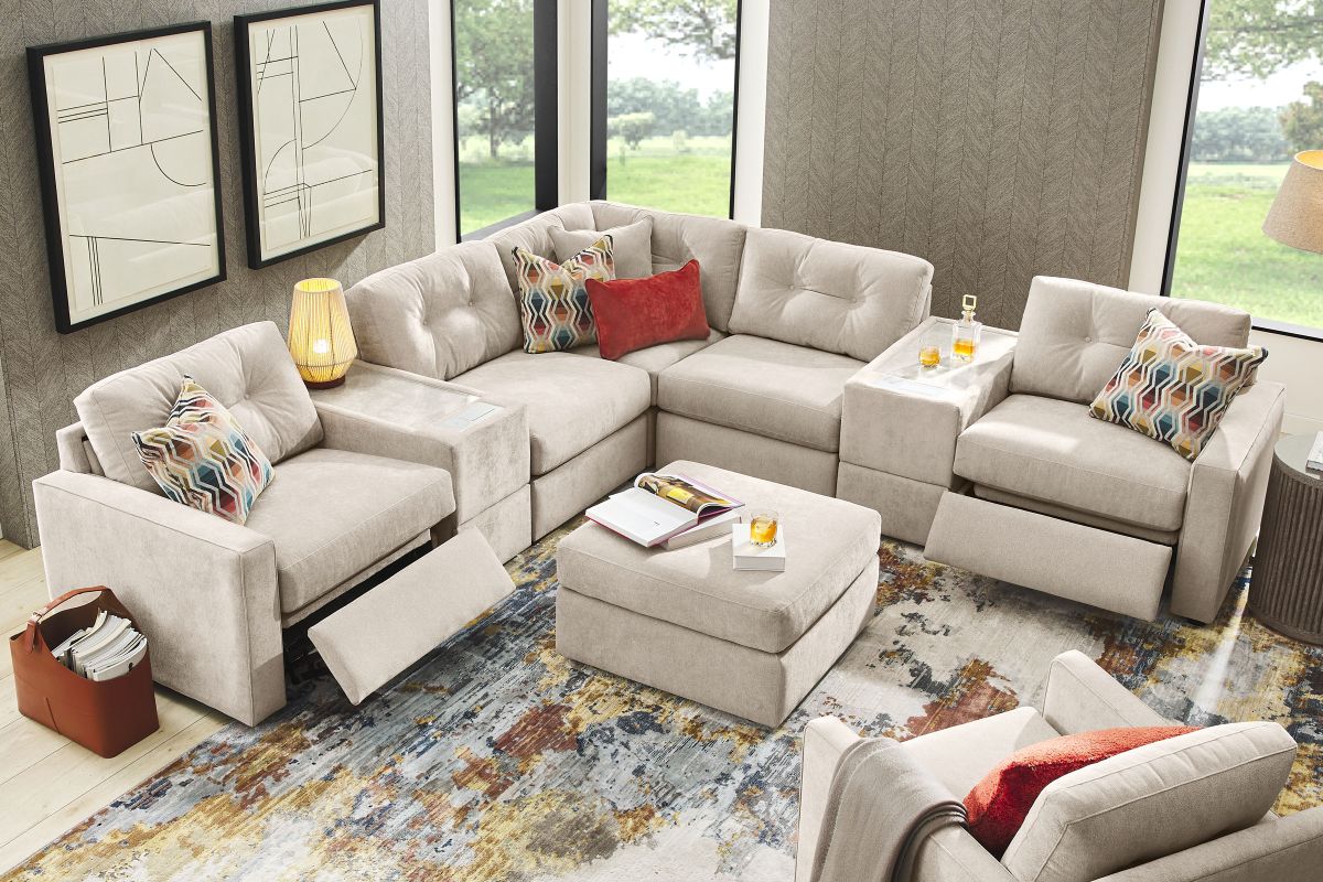 Discover the limitless possibilities of the Modular One Power Reclining Sectional, thoughtfully designed with comfort, flexibility, and modern convenience in mind. This customizable seating solution features individual pieces that can be rearranged to fit your space and lifestyle. Game days, movie nights, sleepovers, and everyday relaxation all feel better when your sectional adjusts to you—now with the added comfort of power reclining for effortless lounging at the touch of a button.