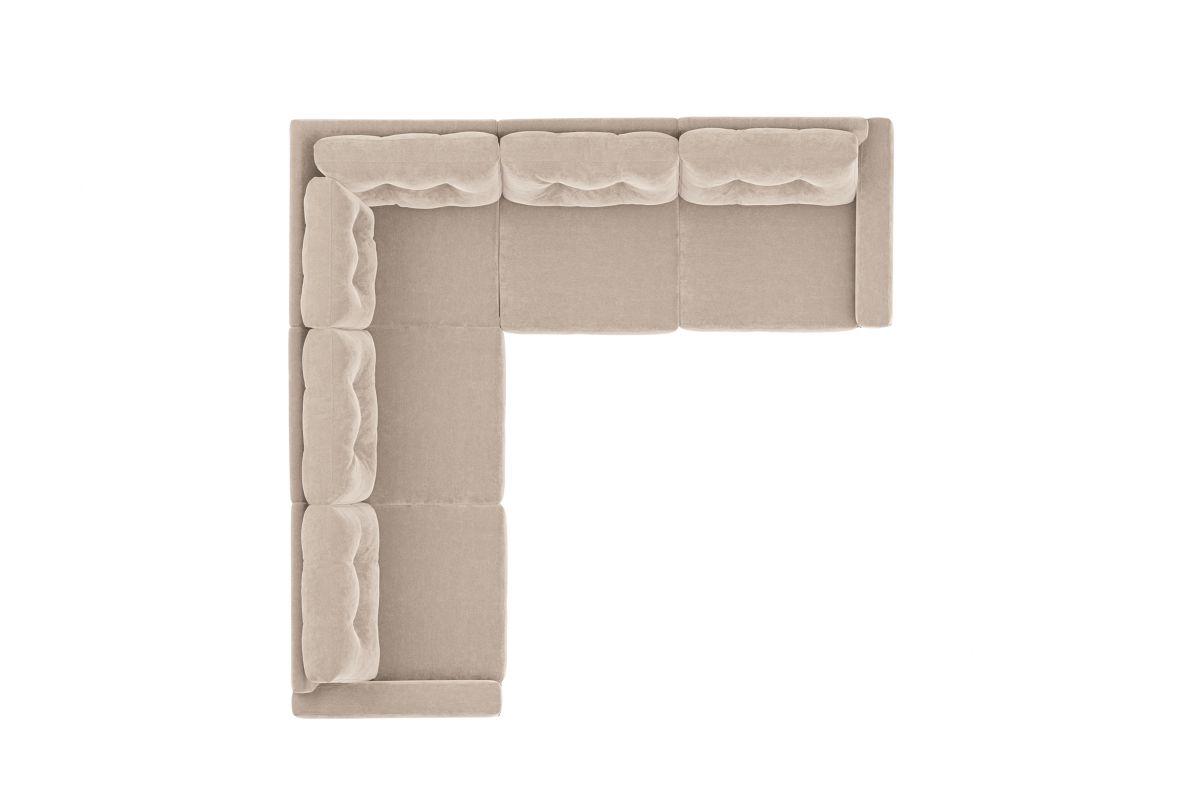The soft beige chenille fabric is crafted with Repreve® yarn, made from recycled plastic bottles, offering sustainability without compromise. The open seating design includes a chaise, welted track arms, top-stitched seat cushions, and button-tufted back cushions for an elevated, polished silhouette.