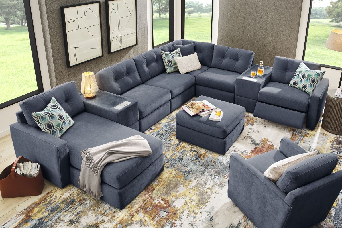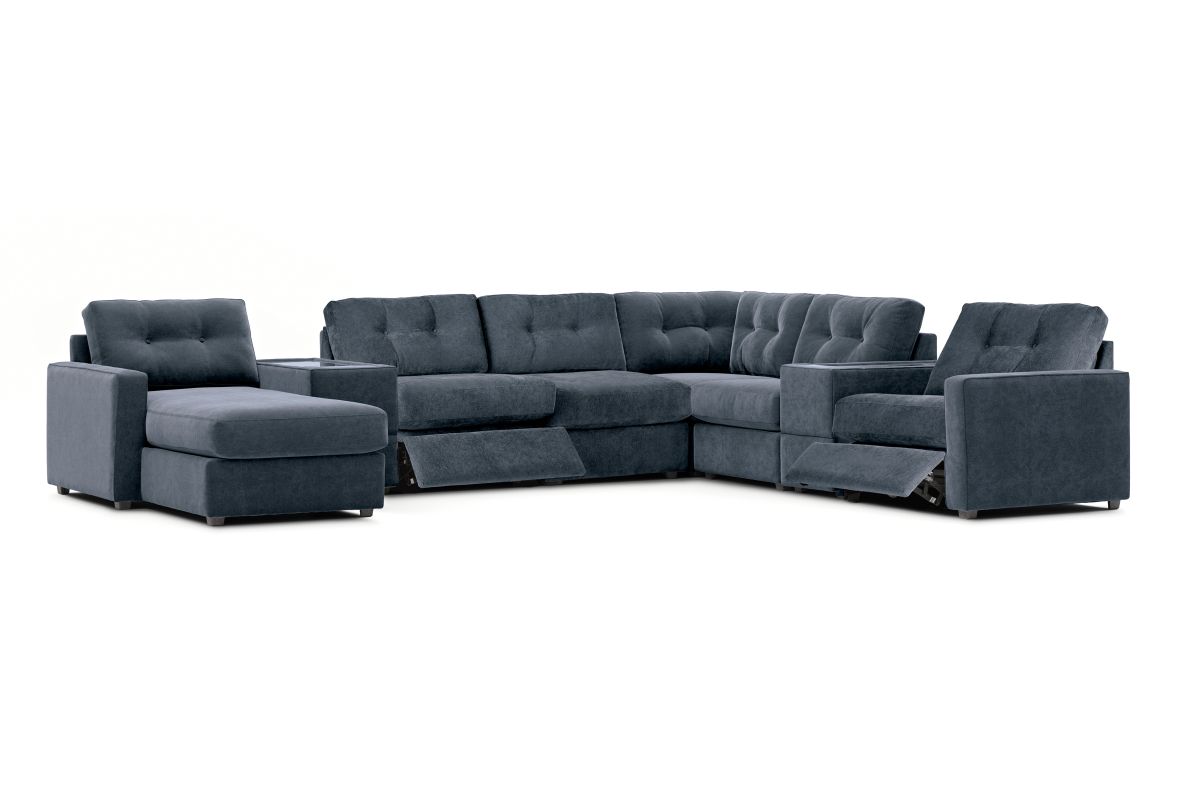 ModularOne Navy 8-Piece Power Reclining Sectional with Two E-Consoles & Left Arm Facing Chaise