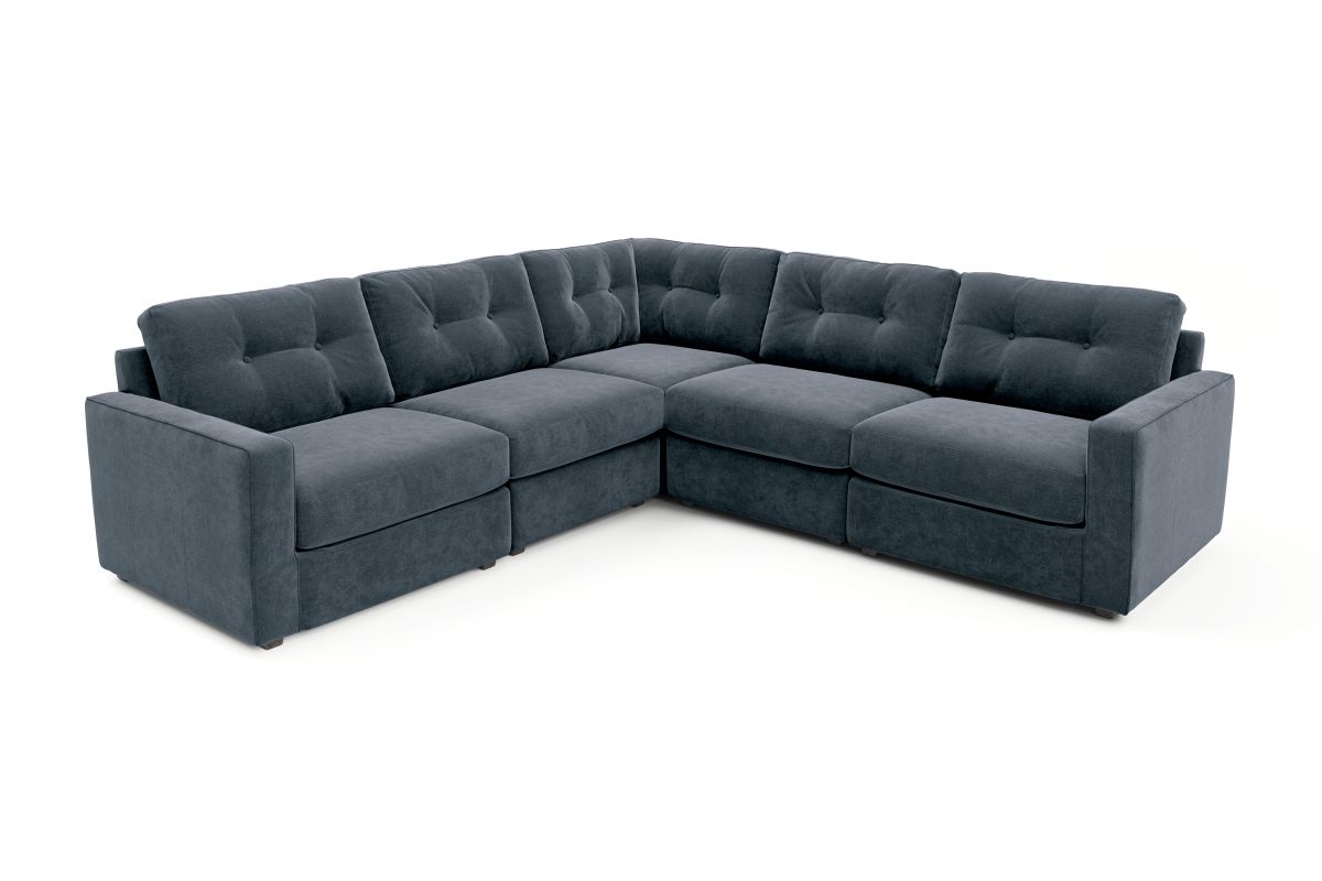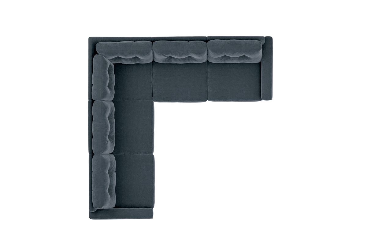 The soft navy chenille fabric is crafted with Repreve® yarn, made from recycled plastic bottles, offering sustainability without compromise. The open seating design includes a chaise, welted track arms, top-stitched seat cushions, and button-tufted back cushions for an elevated, polished silhouette.