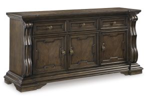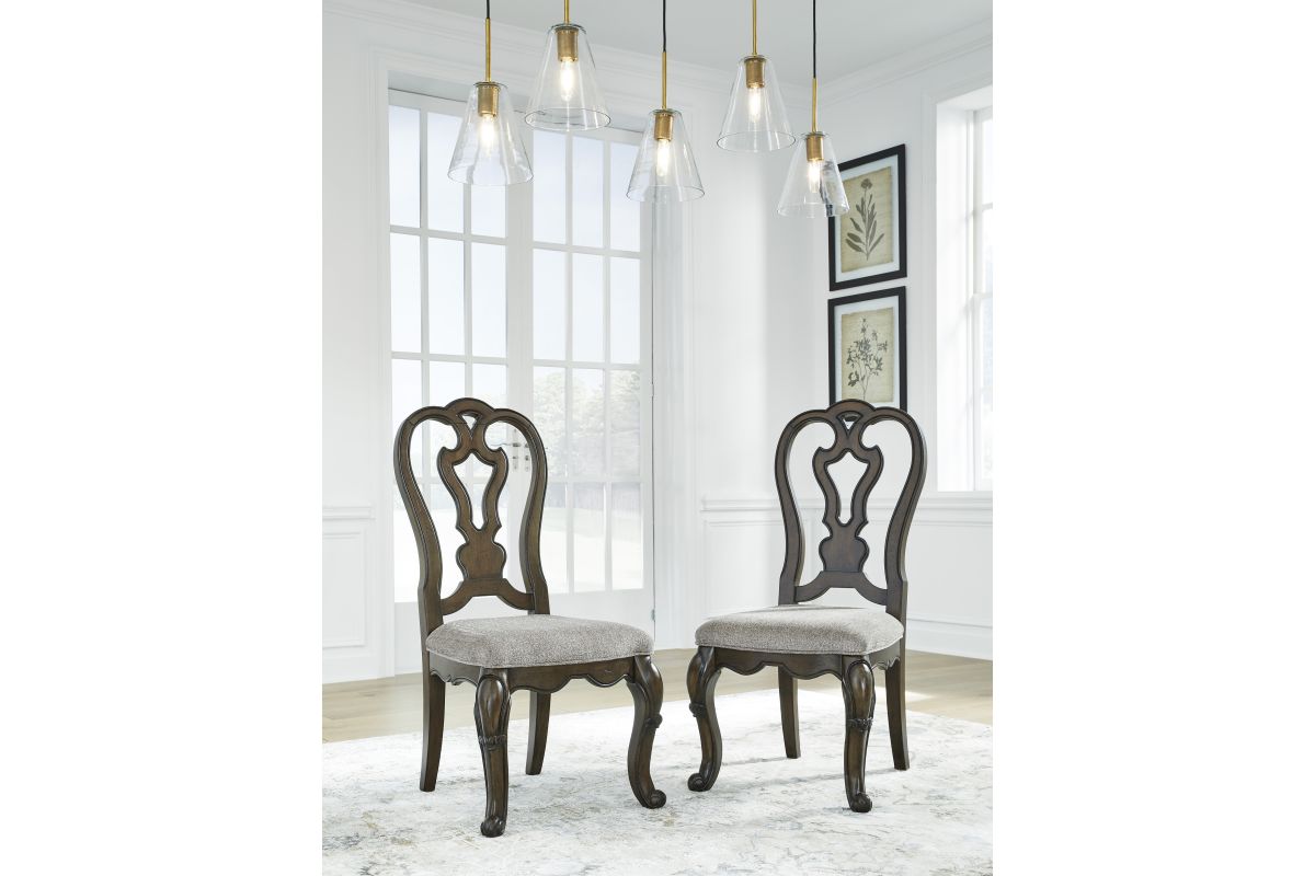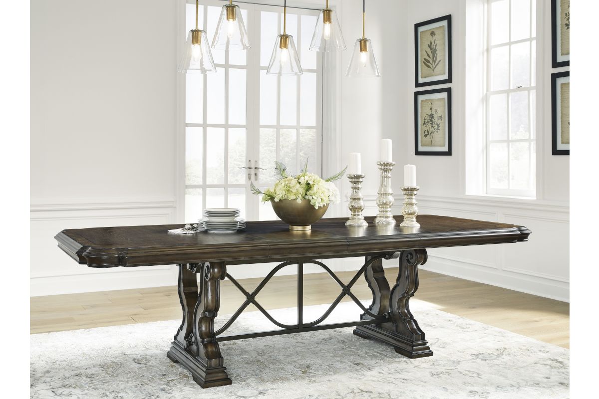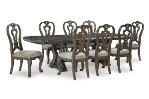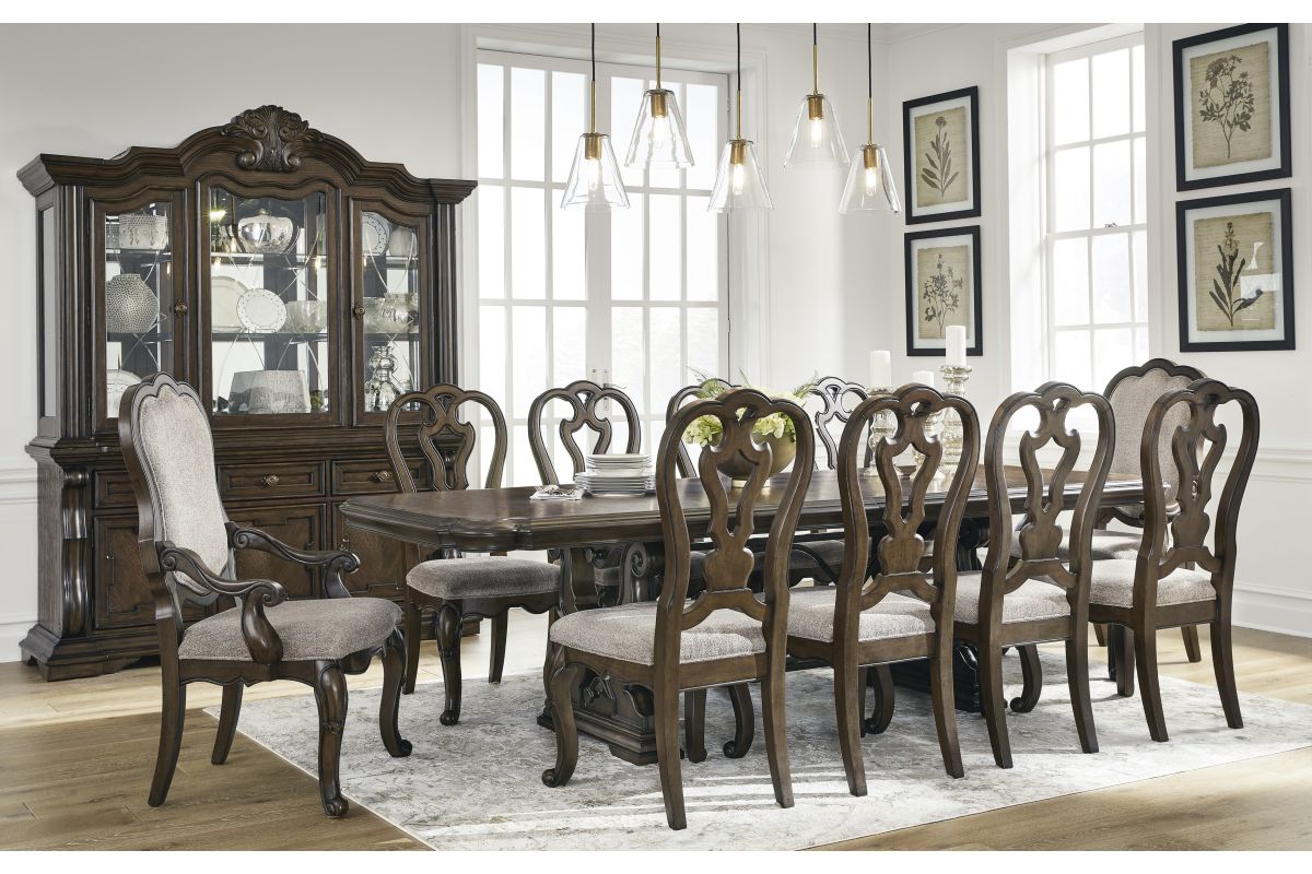 From its ornamental appliques to its large scale, this dining package makes a bold statement. With ornate details, the opulent set wows with stunning style. The look is timeless. The feel? Right at home.