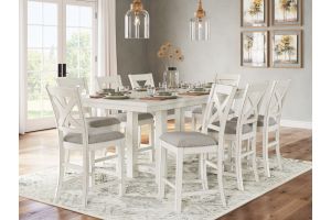 This dining package is sure to impress come mealtime. With its antiqued white finish and a planked effect tabletop, farmhouse-style dining has never been so fashionable. All that’s missing is you and your family.