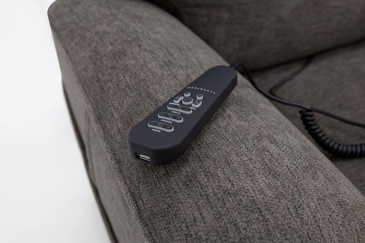 Blissful relaxation and rejuvenating comfort are captured with the multi-use Zofa Umber Triple Power Reclining Sleep Console Loveseat with Left Arm Facing Lift Recliner by Flexsteel. Designed with the Zecliner lift recliner on the left side and a center console configuration, this loveseat delivers personalized wellness while maintaining the flexibility of a modular system. Featuring Zero Gravity reclining, CloudLux™ seat cushions, and integrated heat and air massage, the Zecliner Modular Console Loveseat brings spa-like comfort into your living room. Upholstered in moisture-resistant, easy-to-clean performance fabrics—including a scientifically backed Nanobionic option infused with infrared-emitting minerals that help recycle the body’s energy—this loveseat blends innovation with everyday durability. As the future of modern reclining furniture, the Zofa Umber Triple Power Reclining Sleep Console Loveseat with Left Arm Facing Lift Recliner also includes motion-sensitive LED base lighting, convenient USB ports, and a wireless charging pad, keeping comfort, technology, and functionality perfectly within reach.