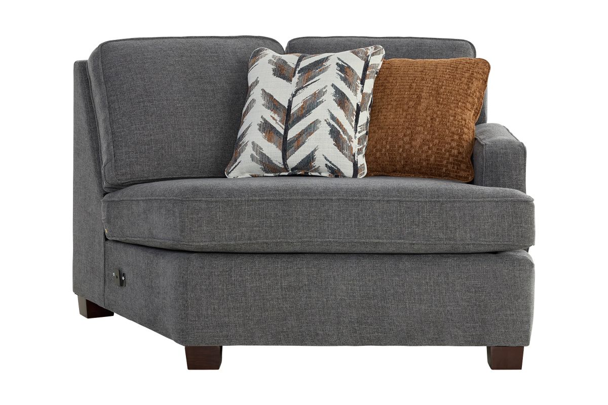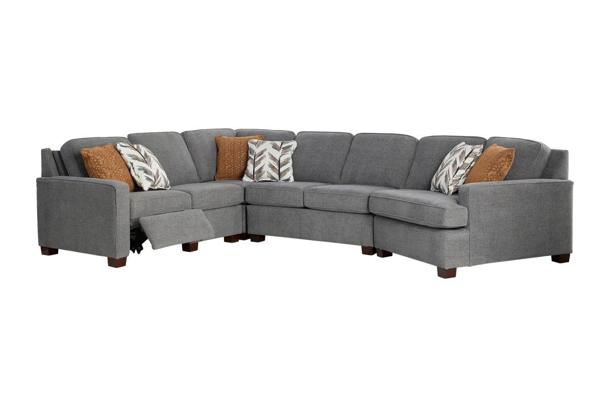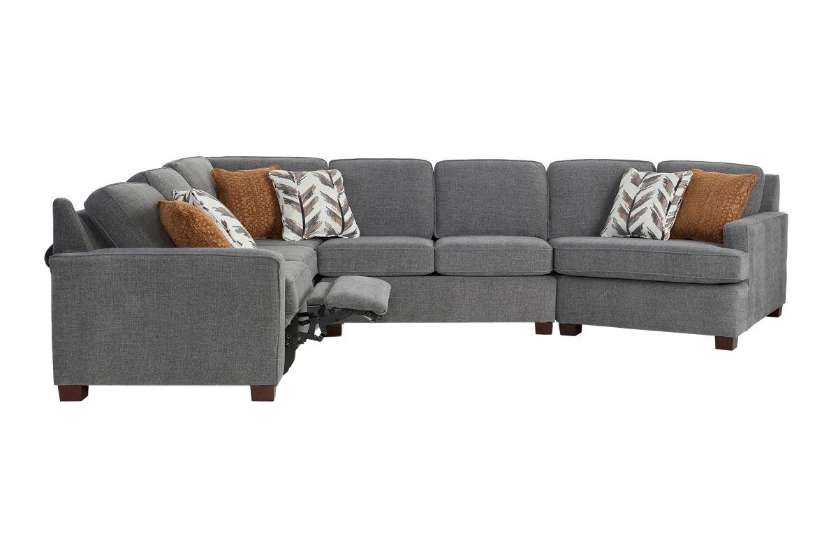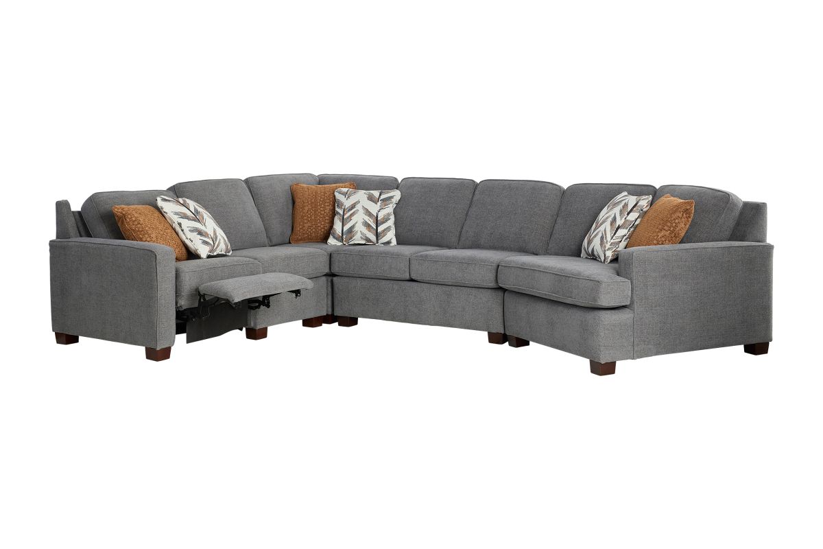 Designed for both everyday comfort and modern living, the Lafayette Grey 4-Piece Power Reclining Sectional delivers spacious seating with thoughtful details you’ll appreciate for years to come. Upholstered in a versatile grey fabric, this sectional features clean lines, plush cushioning, and a right arm facing cuddler that creates the perfect spot to stretch out and relax.