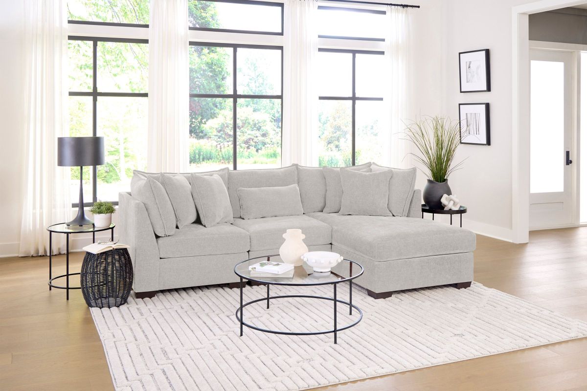 With its neutral ivory tone and versatile design, the Plush Ivory 3-Piece Sectional with Right Arm Facing Chaise pairs effortlessly with a wide range of décor styles, from modern and contemporary to soft transitional interiors, making it a beautiful and enduring foundation for any living room.