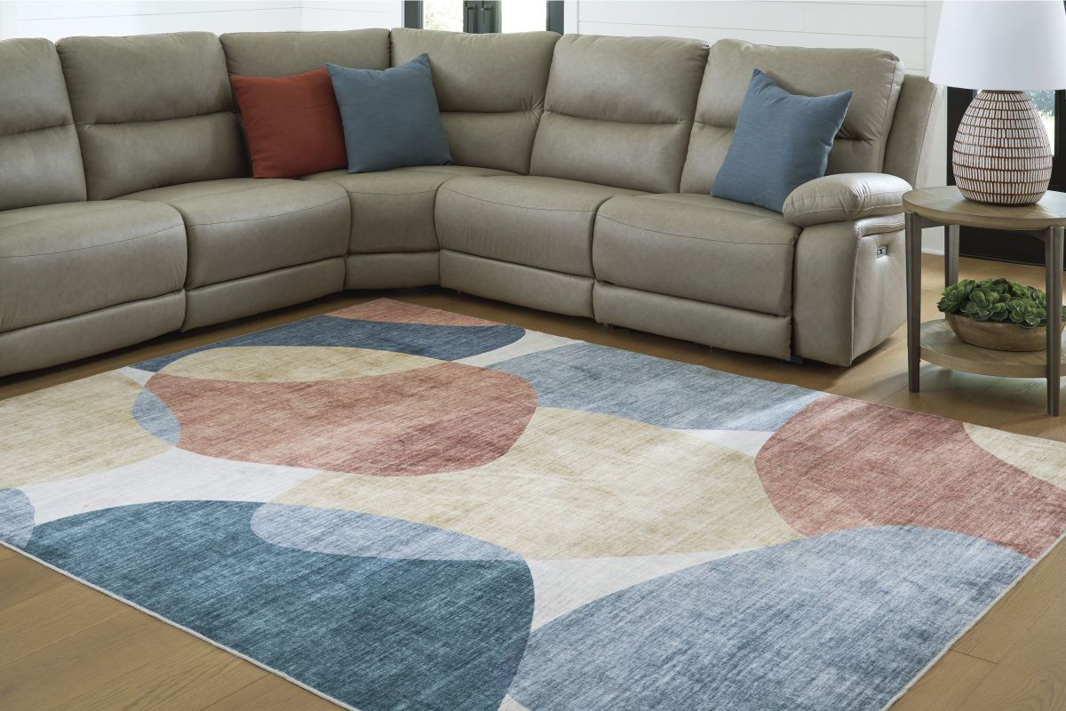Designed for versatility and effortless style, the Aviemore Stone 6-Piece Living Room Set creates a calm, welcoming living space. The stone-toned sectional provides comfortable seating with a clean, modern silhouette, complemented by a coordinating recliner for added relaxation. Finished with matching accent furniture, lighting, and an area rug, this set delivers a complete, timeless look suited to a wide range of interiors.