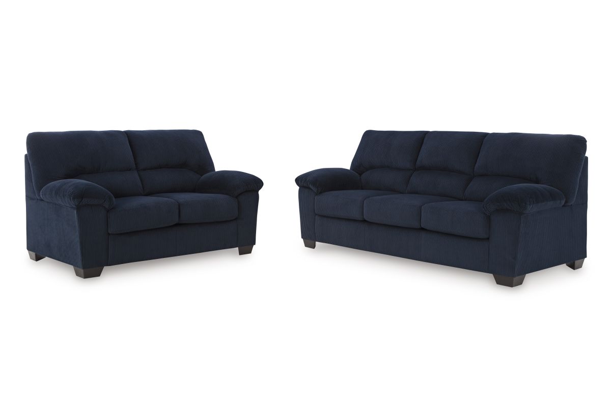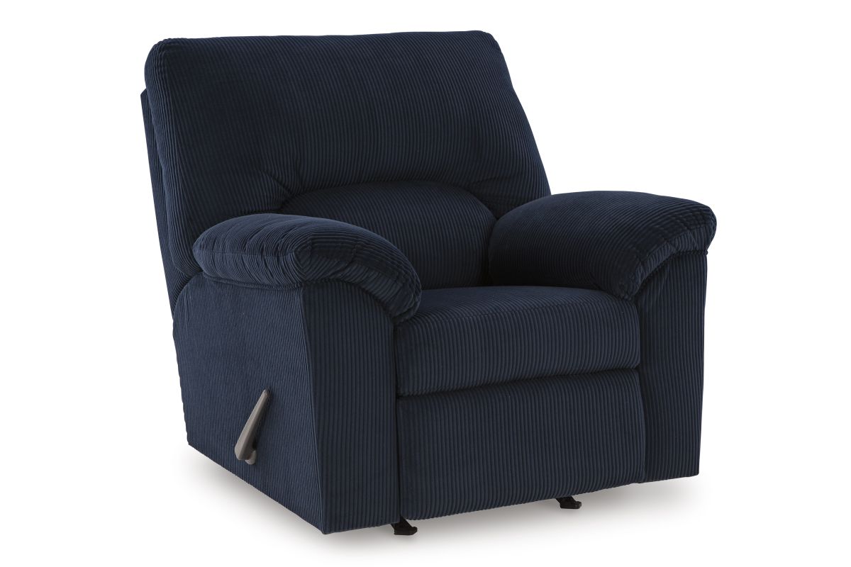 Bring refined comfort and modern appeal to your living space with the Simplejoy Navy 9-Piece Living Room Set. Featuring a sofa, loveseat, and matching recliner upholstered in a rich navy tone, this set offers inviting seating with a polished, contemporary look. A coordinating 3-piece occasional table set, two matching table lamps, and a complementary area rug complete the space, delivering a cohesive, well-balanced living room designed for everyday relaxation and casual entertaining.