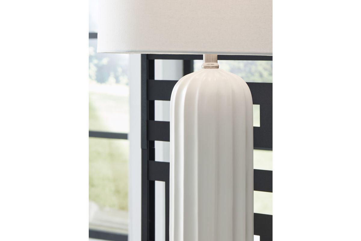 - Lamp is made of ceramic with drum hardback fabric shade