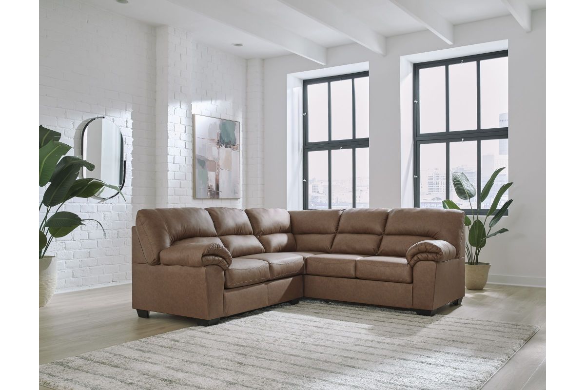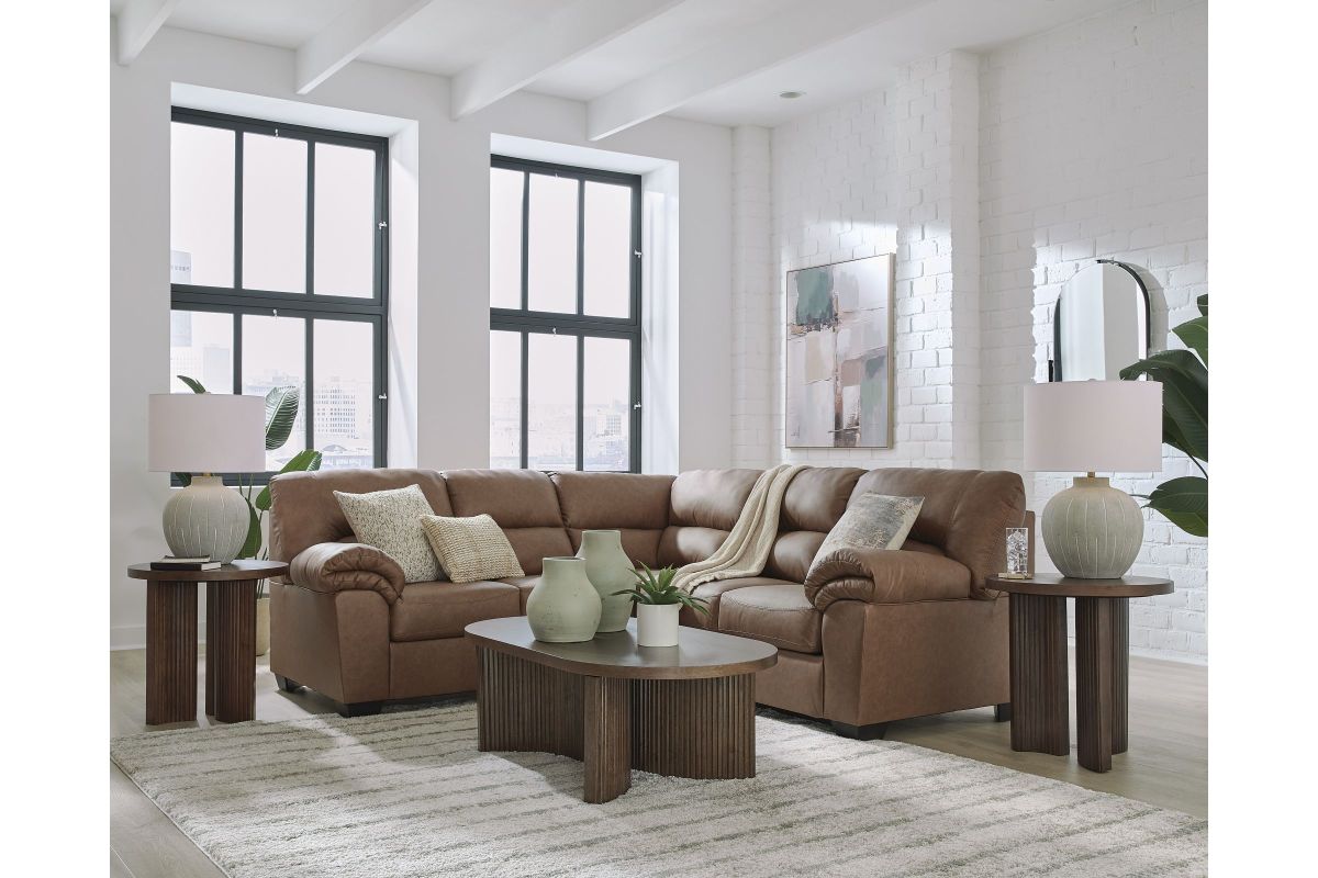 The Willowbend Caramel 8-Piece Living Room Set blends modern comfort with inviting warmth. Featuring a right-facing 2-piece sectional in a caramel finish, this package delivers flexible seating without overwhelming the space. A coordinating recliner enhances relaxation, while matching accent tables, two lamps, and an area rug bring the room together for a polished, everyday-ready design.
