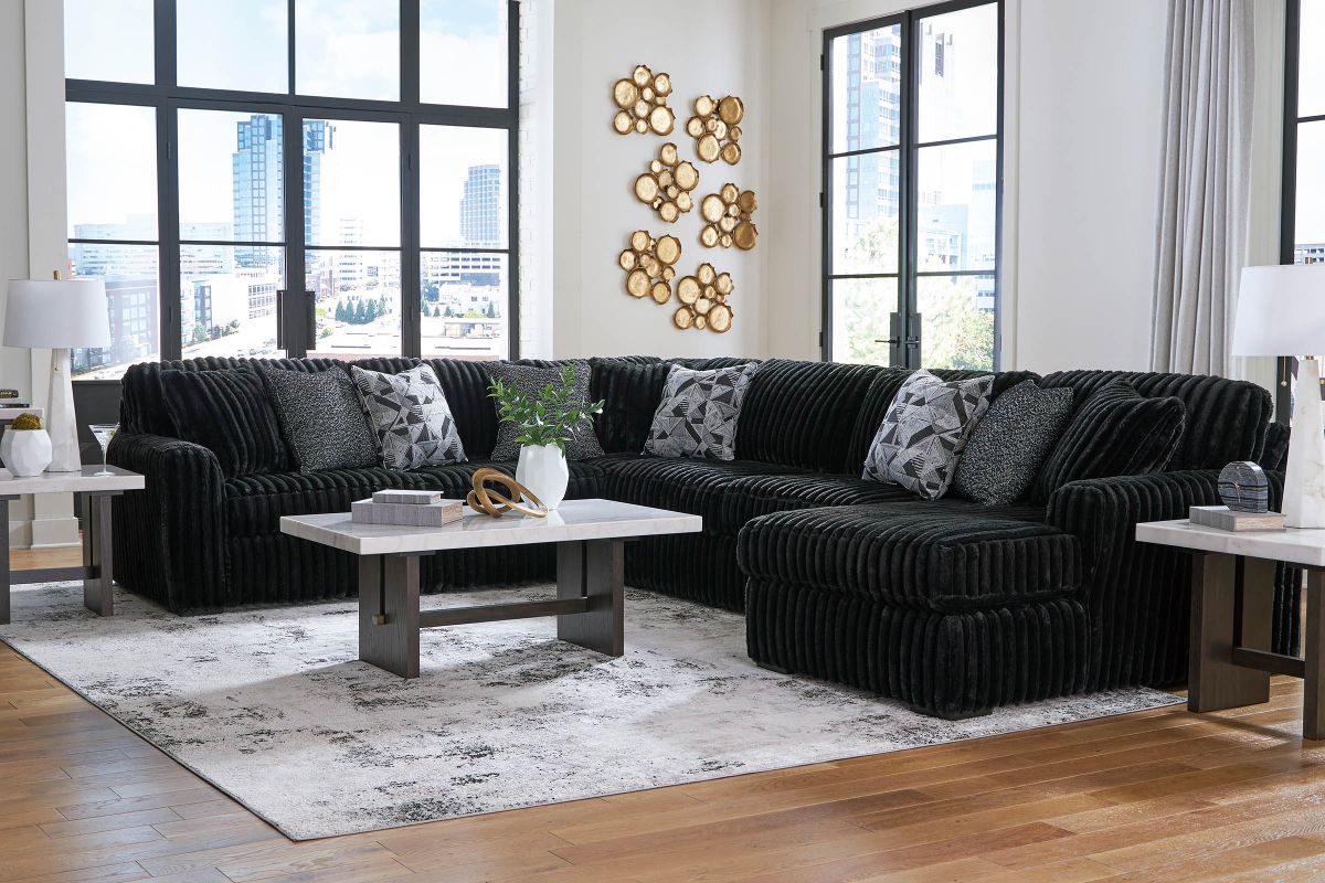 Wrapped in luxuriously soft jumbo corduroy, the Cozy 4-Piece Sectional with Right Arm Facing Chaise takes cozy and inviting to a higher level. This sumptuous piece is perfect for unwinding after a long day, with exceptionally textured cushions that deliver pure indulgence. Now all you have to do is kick back, sink in and relax.