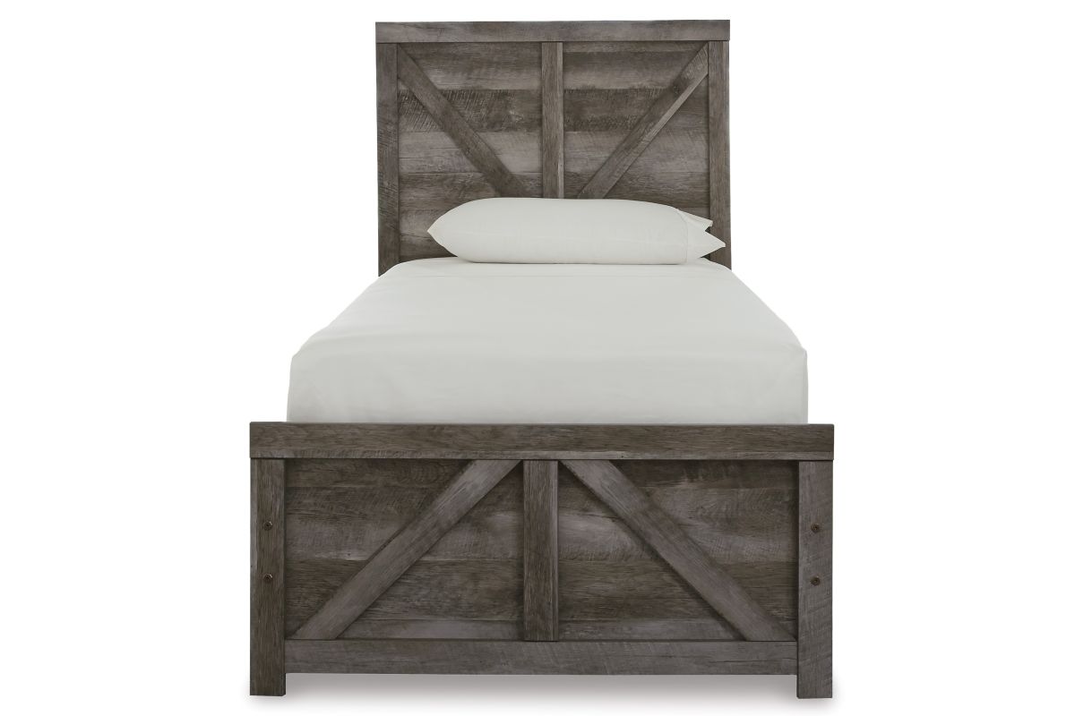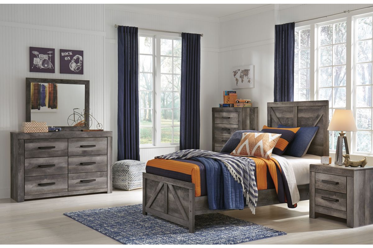 The Crossgate bedroom package is sure to win your heart with its daring designer take on modern rustic. The bed, mirror and dresser’s crisp, clean and minimalist-chic profile is enriched with a striking replicated oak grain with thick plank styling and a weathered gray finish for that much more authentic character. The dresser features large-scale hooded pulls gracing the flush-mount drawers.