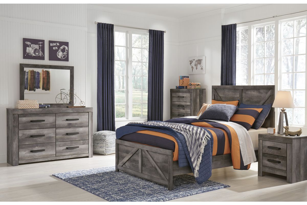 The Crossgate Collection is sure to win your heart with its daring, designer take on modern rustic. The design is crisp, clean and minimalist-chic profile is enriched with a striking replicated oak grain with thick plank styling and a weathered gray finish for that much more authentic character. Large-scale hooded pulls gracing the flush-mount drawers add such a distinctive twist.