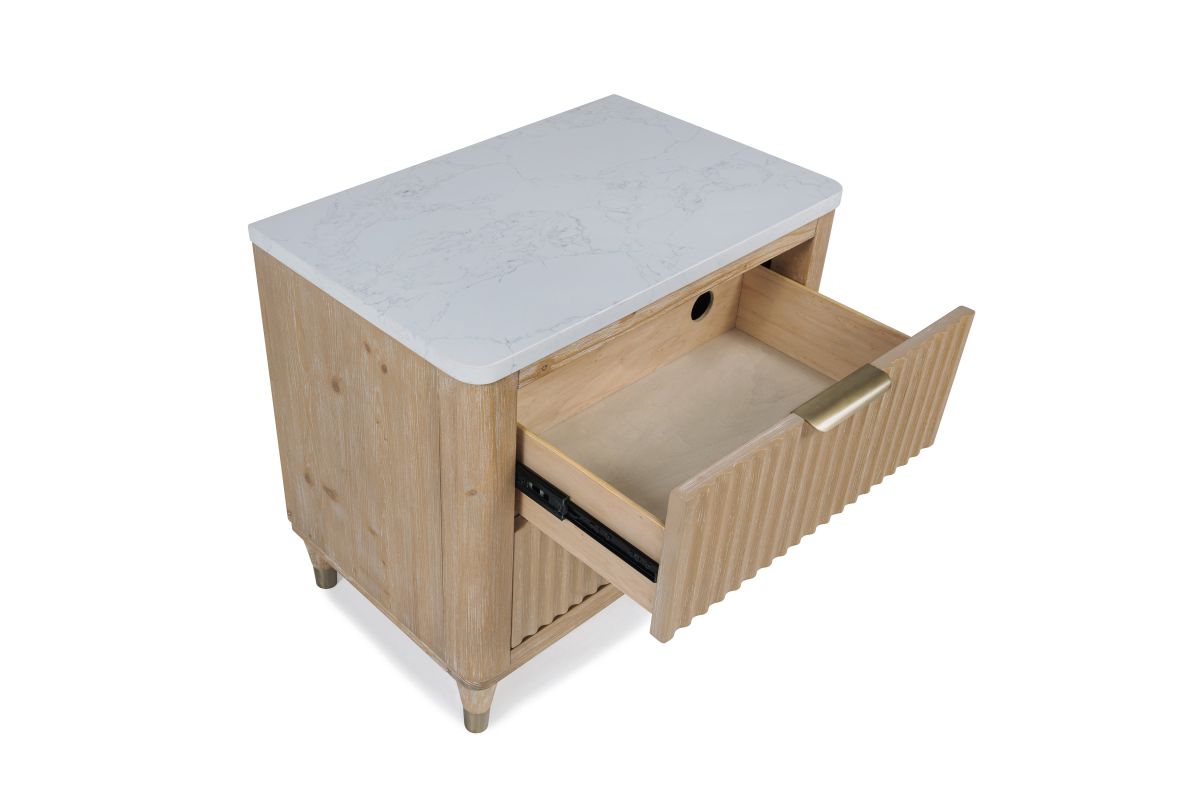 - Cerused natural finish accentuating the wood grain for a soft, elegant look