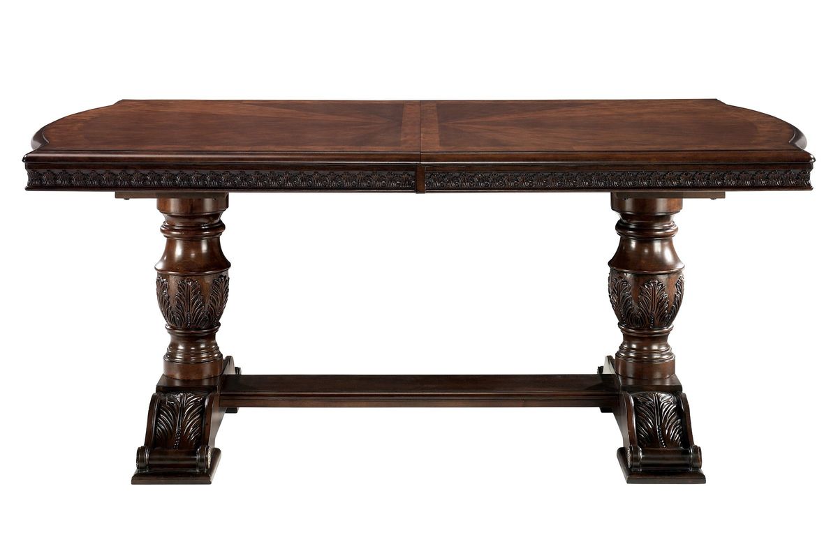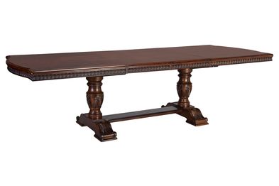 A deep rich stained finish and exquisite details come together to create the ultimate in grand traditional design with the North Dining Table. The opulent brown finish and hand-carved wooden frames will create an elegant atmosphere in your dining area. Let the North Dining Table take your traditional dining room to the next level.