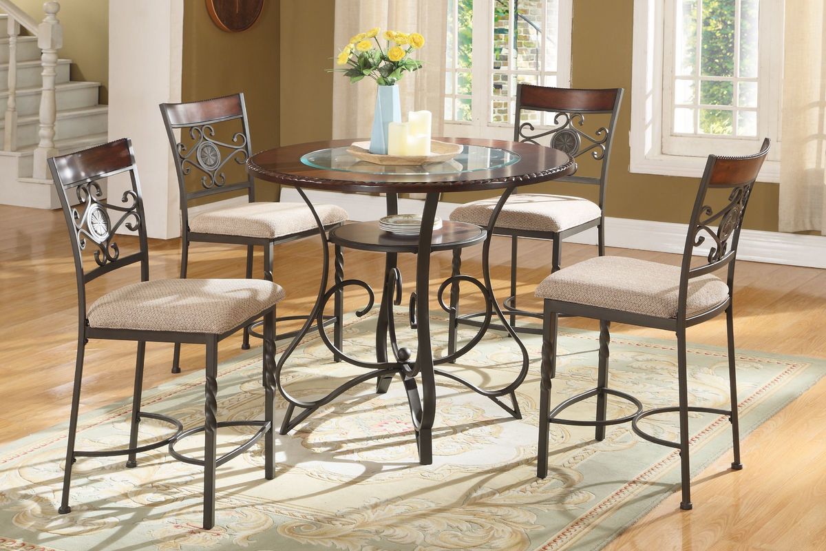 You'll love the simple and elegant style of the Sammy Pub Stool. The metal bases on the chair legs is beautifully crafted and designed. The chair seats are covered in a soft, tan fabric. The chair backs have beautiful metal design, topped with a cherry wood finish. The Sammy Pub Stool is perfect for smaller homes or for those looking for a simple style.