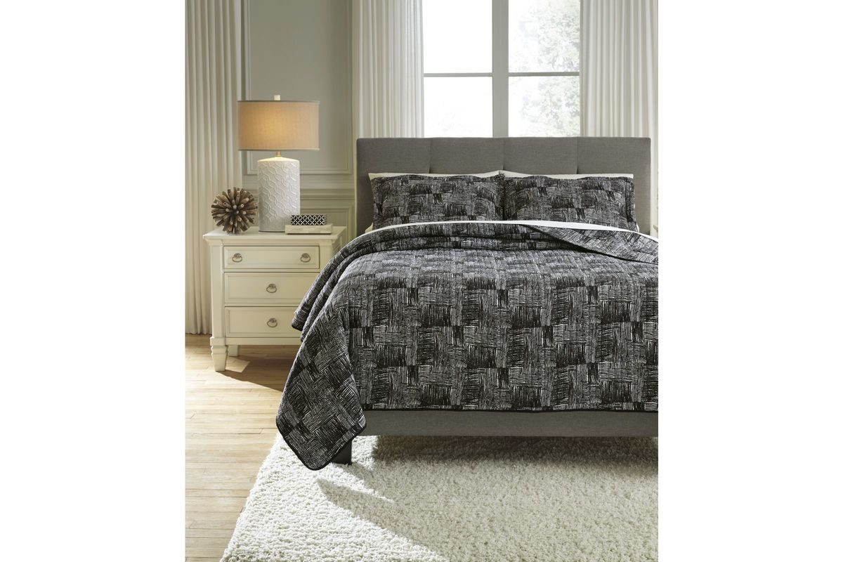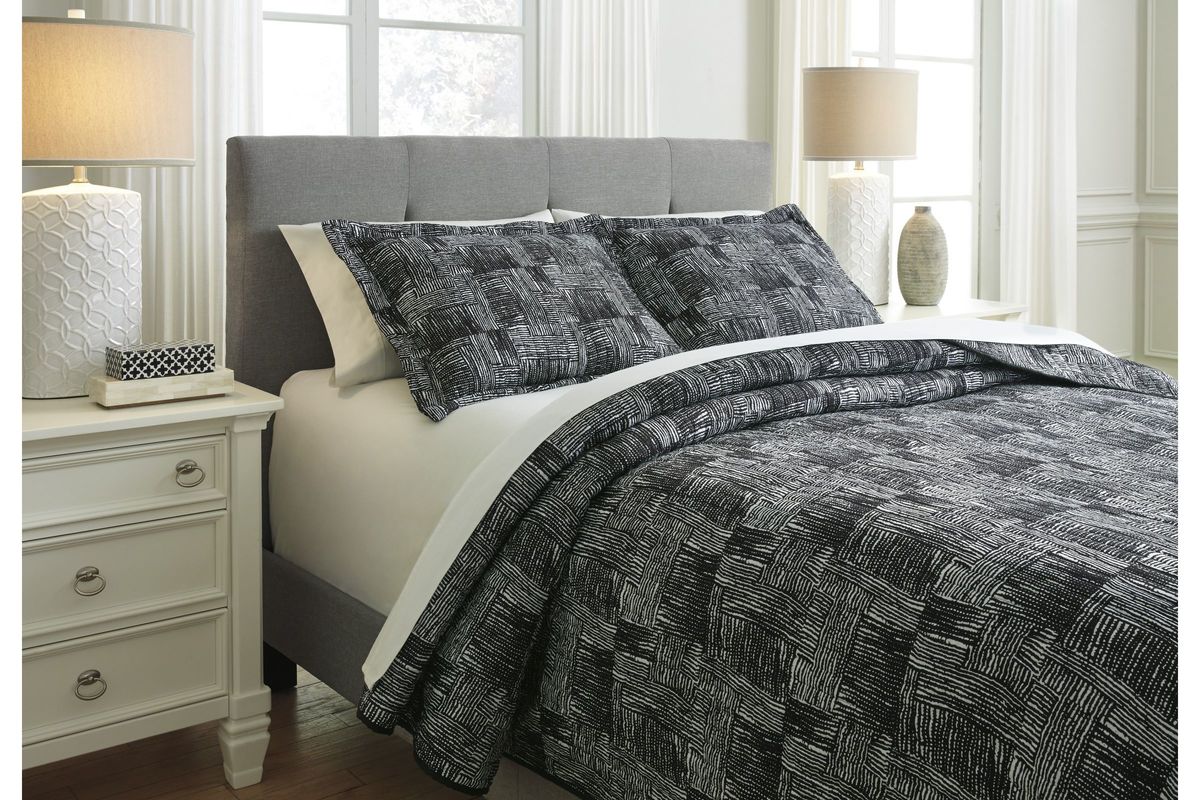 Sorry, the Jabesh Queen Quilt Set in Black by Ashley is no longer available. We've left this page up for reference only. Check out the great alternatives on this page or call 248-481-2208 or Chat with a Gardner White Sales Specialist about similar products.