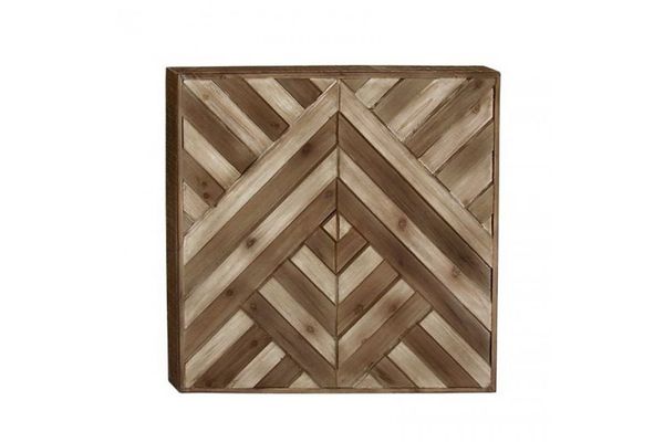 25" x 25" Rustic Reflections wooden wall décor, square frame made from stained fir wood, features mixed chevron and herringbone pattern art using brown and light brown fir wood