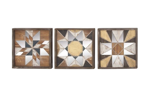 Sorry, the Rustic Reflections Geometric Wall Decor (Set of 3) is no longer available. We've left this page up for reference only. Check out the great alternatives on this page or call 248-481-2208 or Chat with a Gardner White Sales Specialist about similar products.