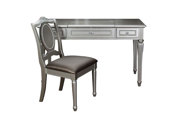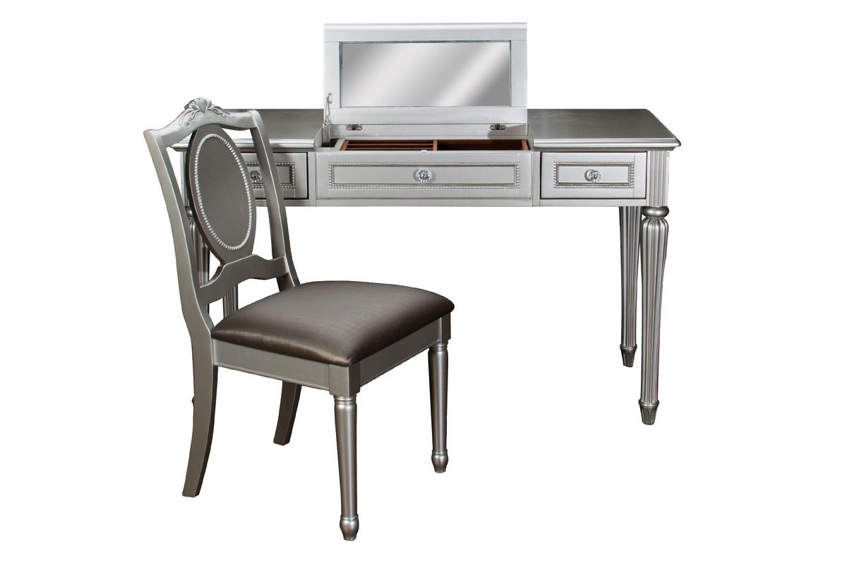 The Chantilly Collection will transform your child's bedroom into a fairy tale dream. All pieces in this collection have a platinum finish and feature a heart and flowers theme! Chantilly is constructed of pine and hardwood solids, for durability. Continue the enchanted design with the computer desk and coordinating chair!