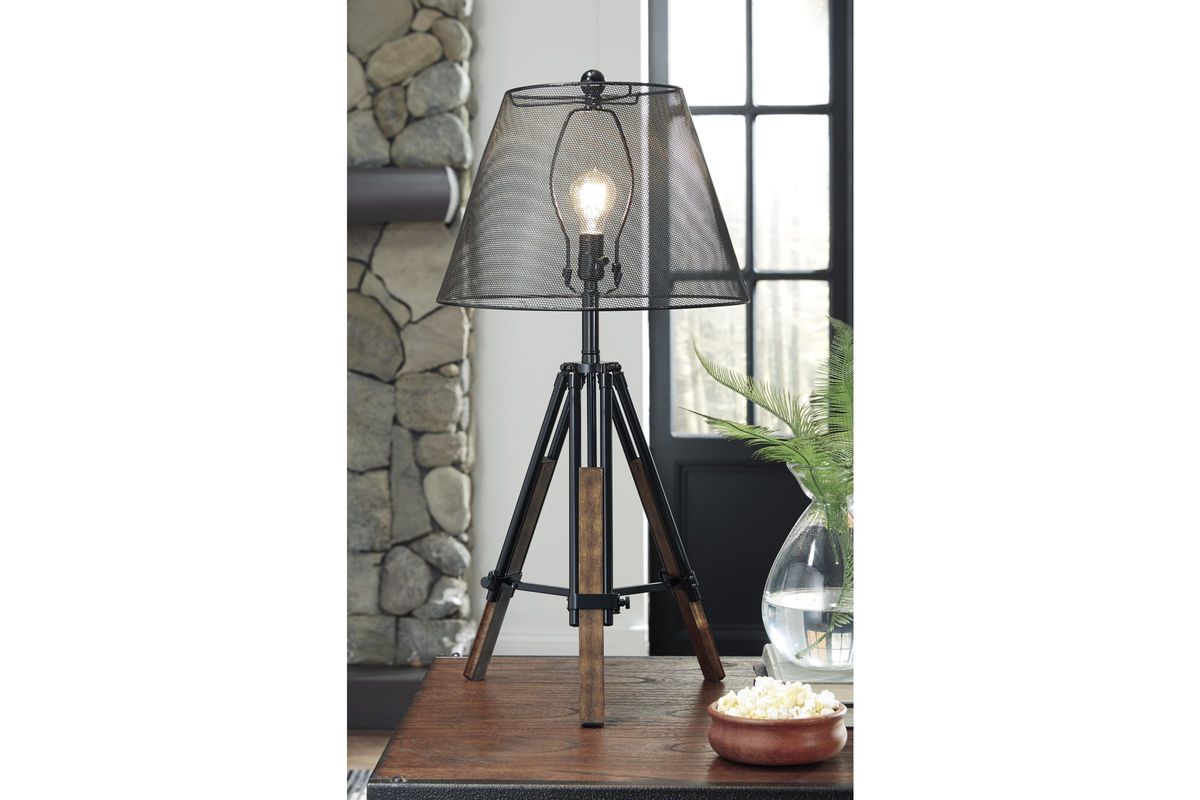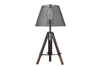 Sporting a snappy tripod base and wire mesh see-through shade, this table lamp strikes a pose for casually cool style. Blend of wood and metal makes it all the more interesting. Adjustable height design makes it all the more functional.