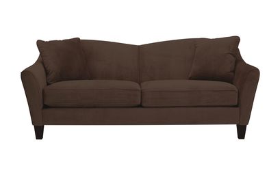 The Sweetheart Sofa is named after it's unique heart shaped back and lovely design. The durable, chocolate, velvet microfiber fabric is versatile enough to blend well with any décor. Built with quality craftsmanship inside and out, this sofa features padded flared arms and sinuous spring (no-sag) cushions for ultimate comfort.