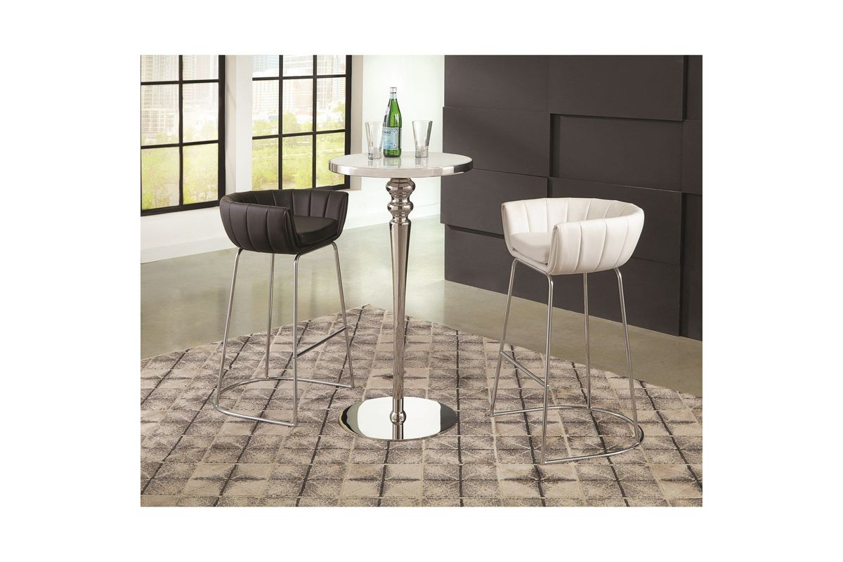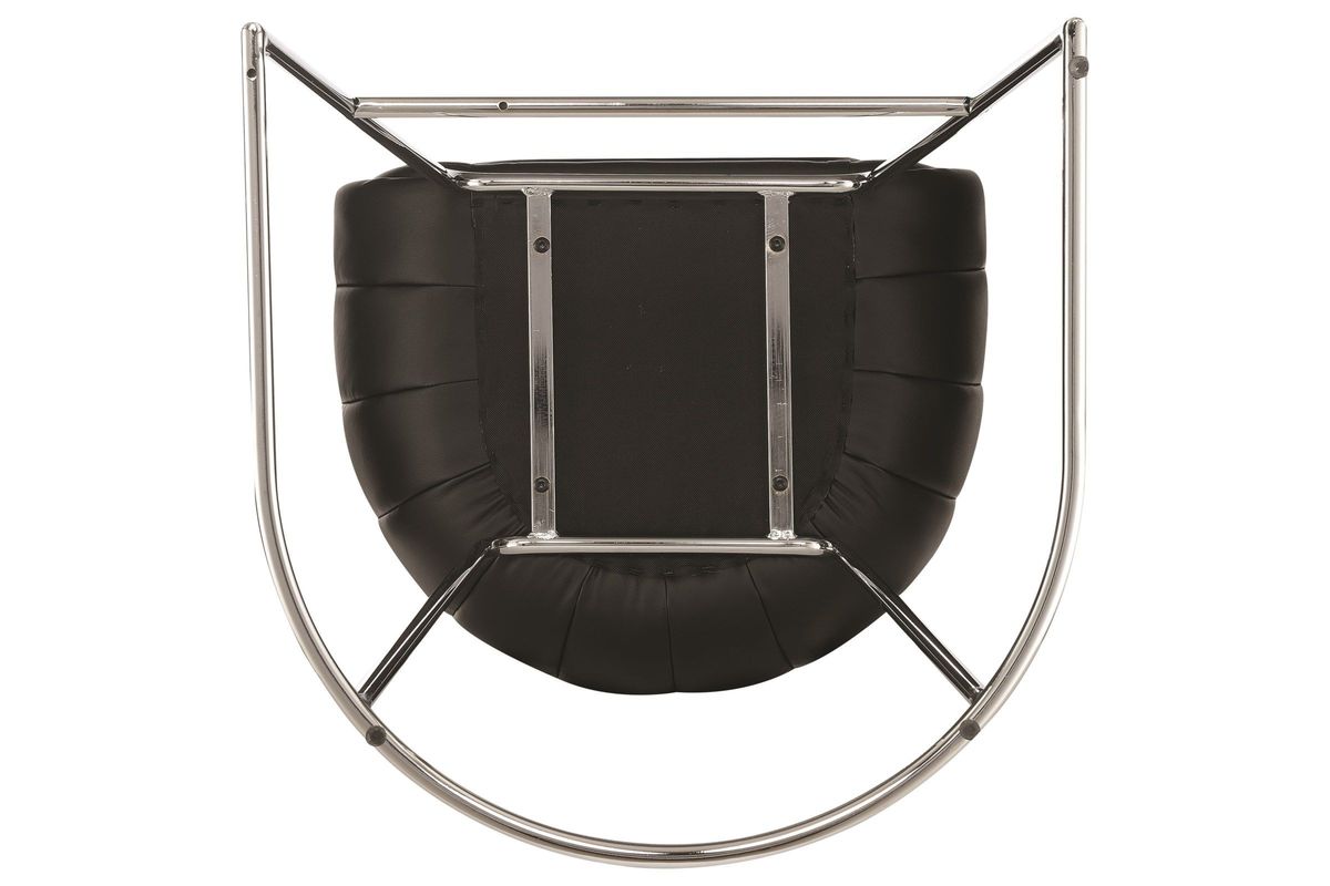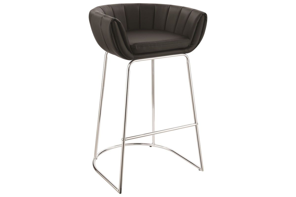 Let your friends lounge with a drink in style in this contemporary black low-back bar stool. With a chrome metal leg finish, this stool features a black polyurethane faux leather-lined seat. Pair this seat with a chic table top for a modern bar setup.