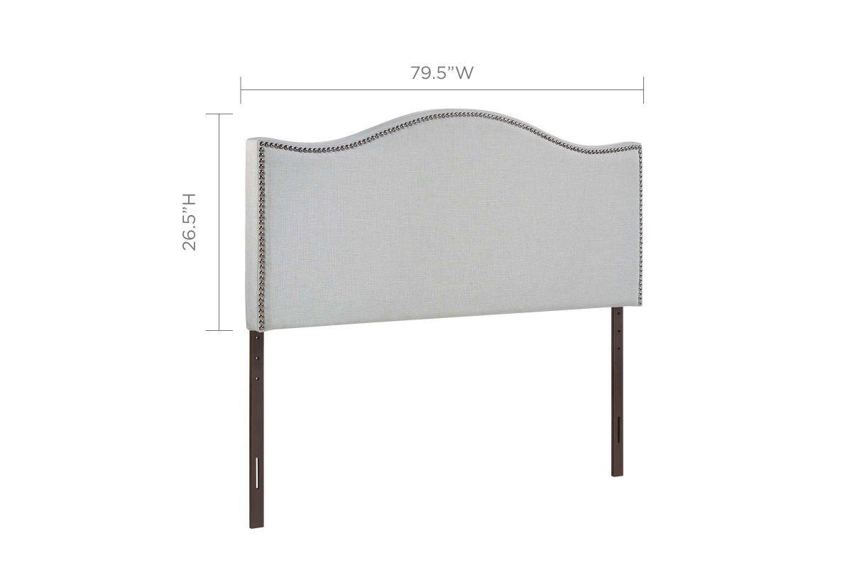 Sorry, the Curl King Nailhead Upholstered Headboard in Sky Grey is no longer available. We've left this page up for reference only. Check out the great alternatives on this page or call 248-481-2208 or Chat with a Gardner White Sales Specialist about similar products.