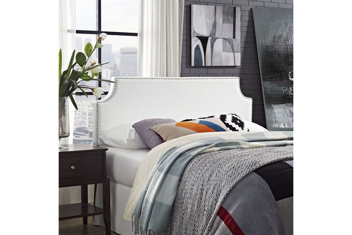 Sorry, the Laura King Upholstered Headboard in White is no longer available. We've left this page up for reference only. Check out the great alternatives on this page or call 248-481-2208 or Chat with a Gardner White Sales Specialist about similar products.