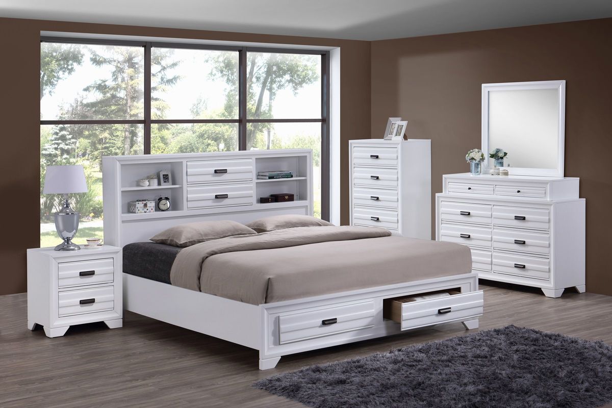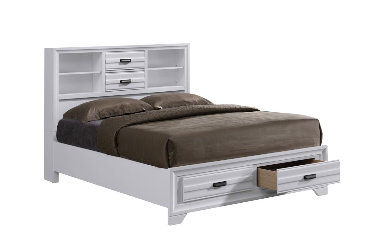 - Full, queen or king bed includes a bookcase headboard with 2 drawers, plus an additional 2 under bed storage drawers