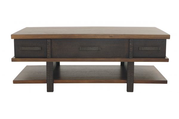 Earthy, rustic character. Clean, contemporary lines. The best of both stack up beautifully in this lift top coffee table. A simple, blocky profile is enriched with a two-tone finish with deep distressing for a decidedly different aesthetic.