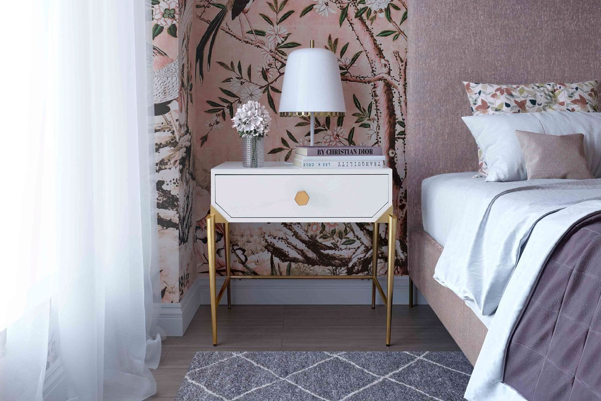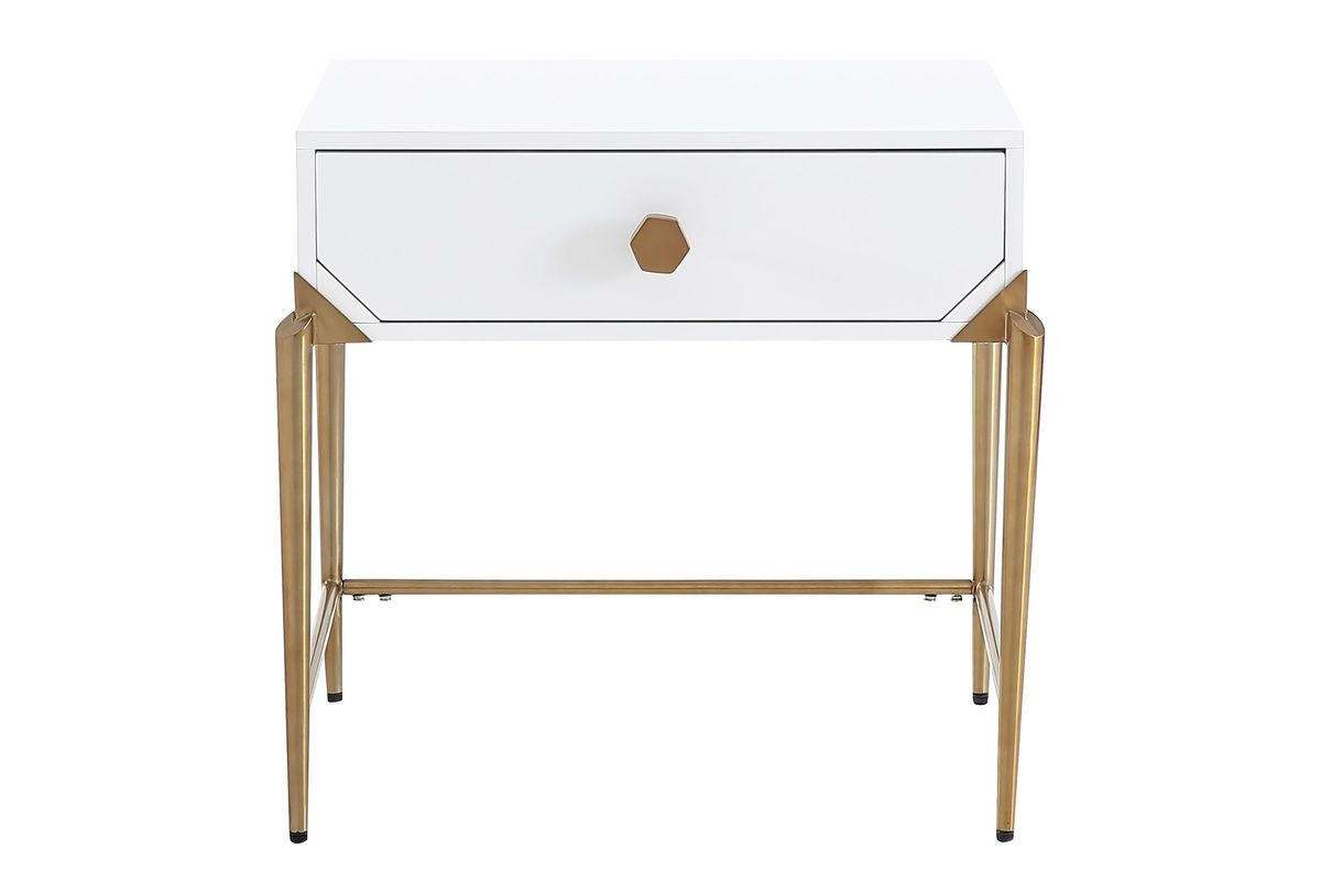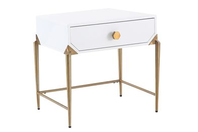 Add a burst of fresh style to your space with the Bajo side table. Featuring a lacquer finish, gold legs and matching hardware and a spacious drawer, it's available in two colors to suit your fashionable taste.