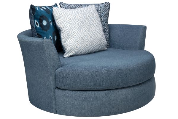 Both stylish and functional, you'll love having the Calypso Pod Chair in your home. It boasts a clean and contemporary blue fabric that pairs well with the coordinating sectional, or style it with your exisiting decor!