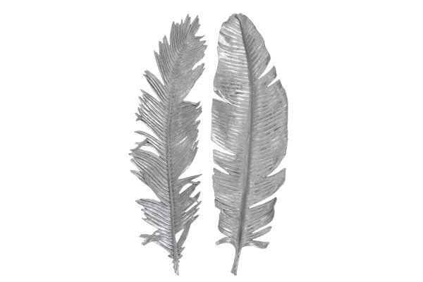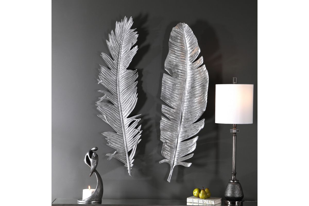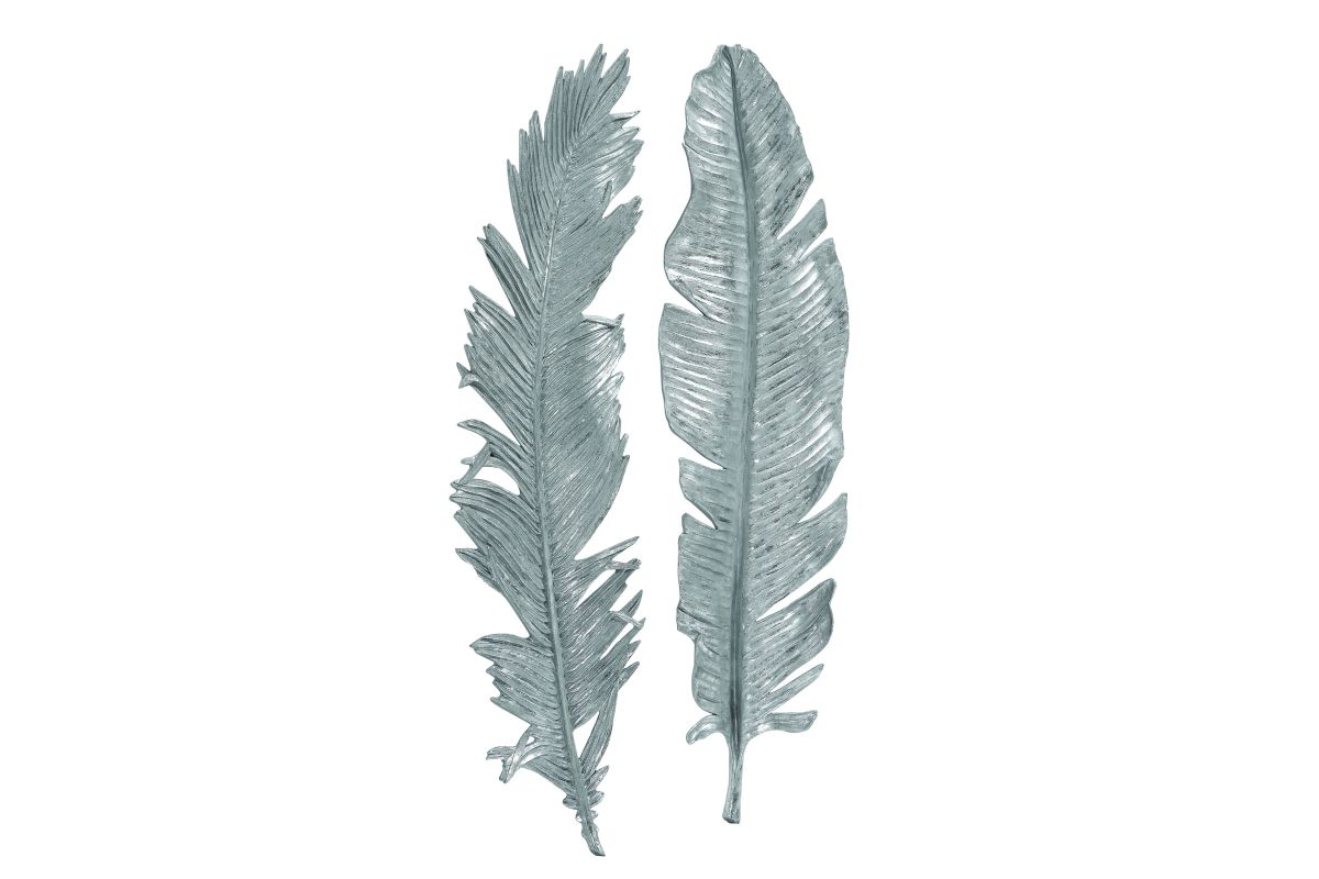 - A Whimsical Set Of 3-dimensional Cast Feathers In Hand-applied Bright Metallic Silver Leaf.