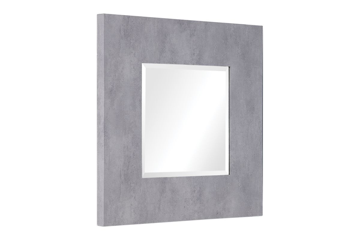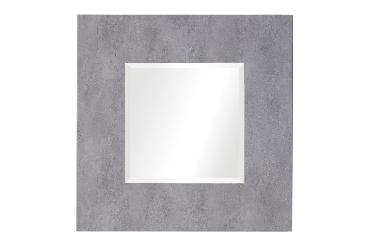 - This Square, Industrial Style Mirror Is Constructed With A Thick, Solid Pine Wood Frame Finished In A Weathered Light Gray Stone Look . The Mirror Is Surrounded By A Generous 1 1/4" Bevel.