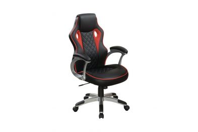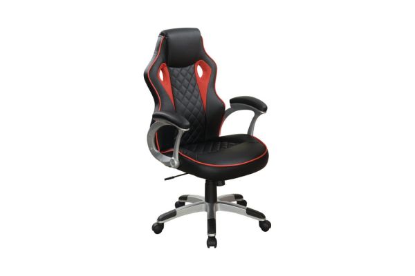 Capitalize on color as you complete work tasks. This black and red office chair delivers an energetic aesthetic and a ton of comfort. Settle in on a nicely padded and molded seat and seat back. Padded armrests and adjustable height positions round out ergonomic benefits. Caster wheels accommodate easy movement.