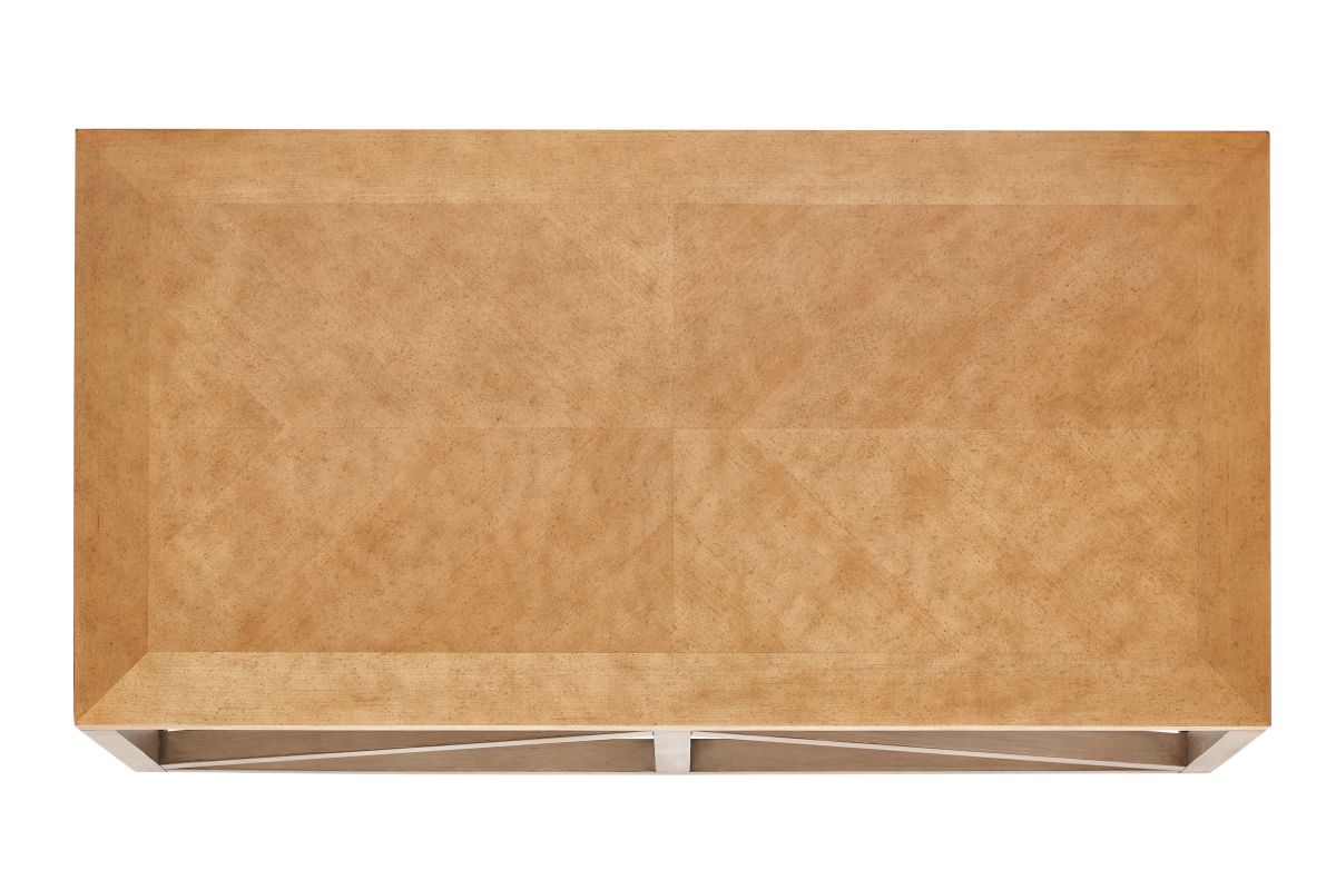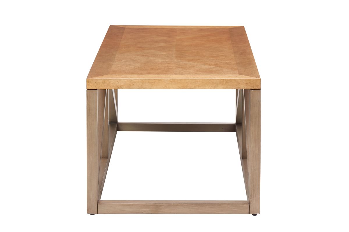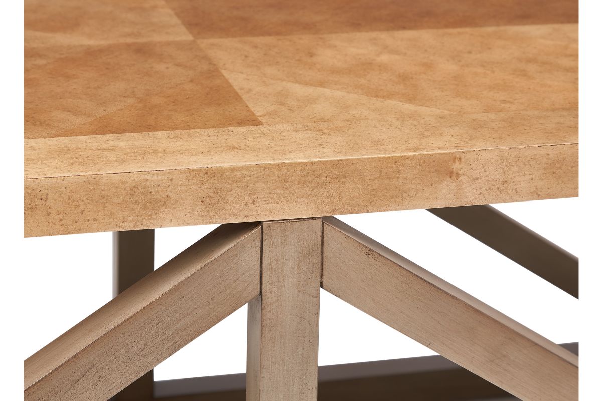 Just as beautiful as a South Haven beach, this cocktail table features a parquet designed taple top in a desert finish that will have you reminicing of sandy beaches. The slate grey finish on the base accents the table top perfectly.