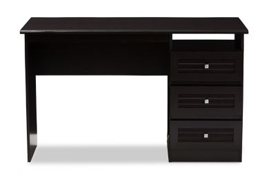 The Kepner desk has a classic, modern look that looks right at home in your office. The modern and contemporary-inspired design is simple and sophisticated. The Kepner is finished in a wenge brown and has modern square knobs in a silver finish. The desk features three convenient pull out drawers with a framed horizontal slatted design on their fronts. The Kepner also features an open compartment on the right-hand side of the desk, perfect for extra storage or managing cables. The practical, open workspace of the desk makes this an ideal addition to your private office, home office, den, or study. Made in Malaysia, the Kepner requires assembly.