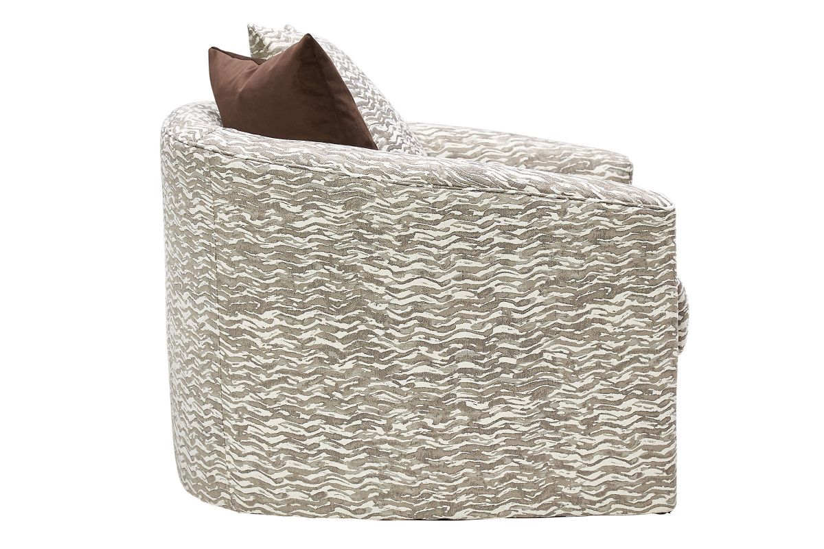 Relax into comfort on the contemporary stylings of the Casper Swivel Accent Chair. Featuring generously sized cushions, soft chenille fabric and stylish down-blend accent pillows, this is the perfect swivel accent chair to comfortably sink into for hours. Loose and reversible seat and back cushions allow for easy cleaning and rotation for the freshest look. The swivel mechanism allows for this chair to effortlessly turn 360 degrees, ideal for entertaining. Loving every inch of your living space becomes easier with the Casper Swivel Accent Chair.