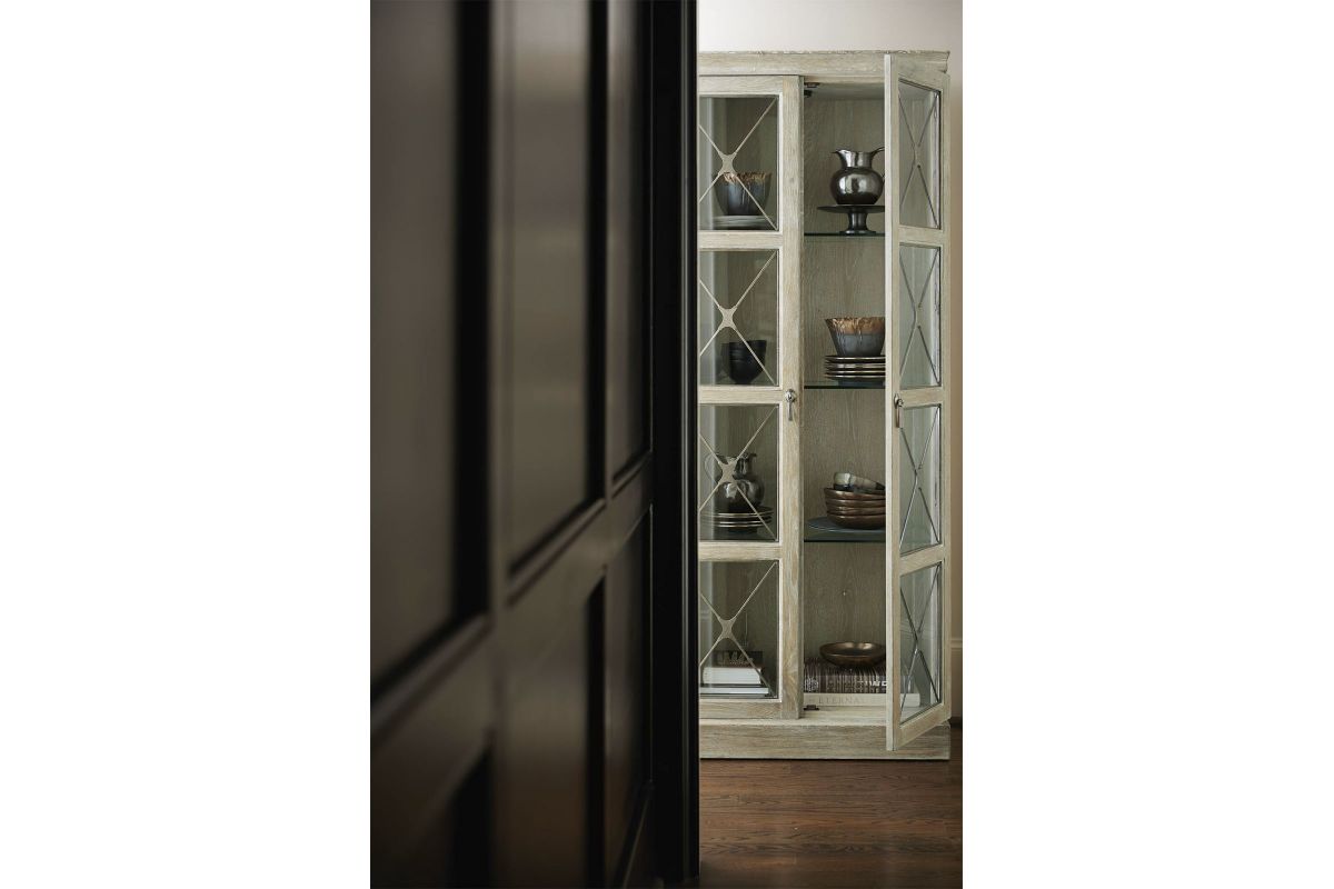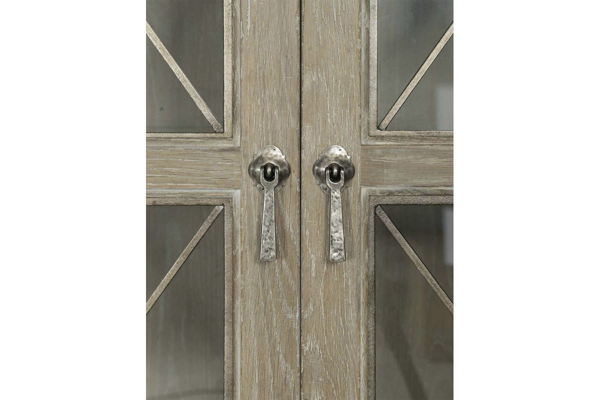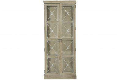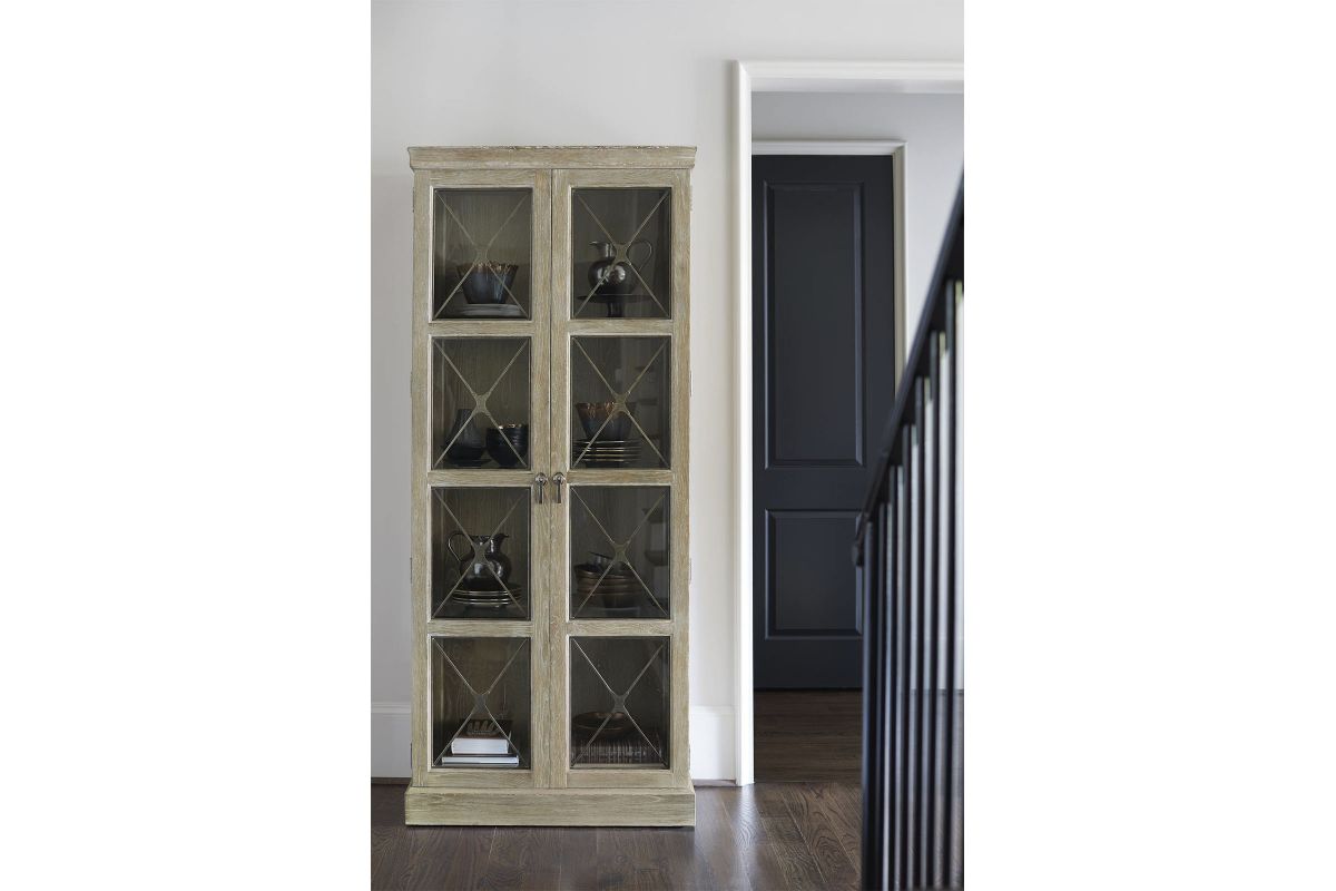 Natural elegance with subtle, sophisticated detailing runs deep in each element of the Rustic Patina Curio Cabinet by Bernhardt. Beginning with the thoughtfully selected character of the sand-colored wood and uniquely oxidized metal detailing on the doors. Featuring luxury materials and harmonious colors, in turn complimenting any rustic, transitional, modern, or traditionally styled room. Upgrade your home with the luxurious style of the Rustic Patina Curio Cabinet by Bernhardt.