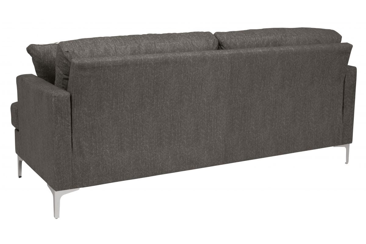 If modern subtlety is your style, settle into the heavenly texture of this sofa. The tremendously soft upholstery has a slight herringbone pattern that adds depth and richness to the java color. The metal accent legs elevate this piece as well as the style of it and add a decidedly chic sense to your space.