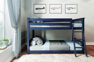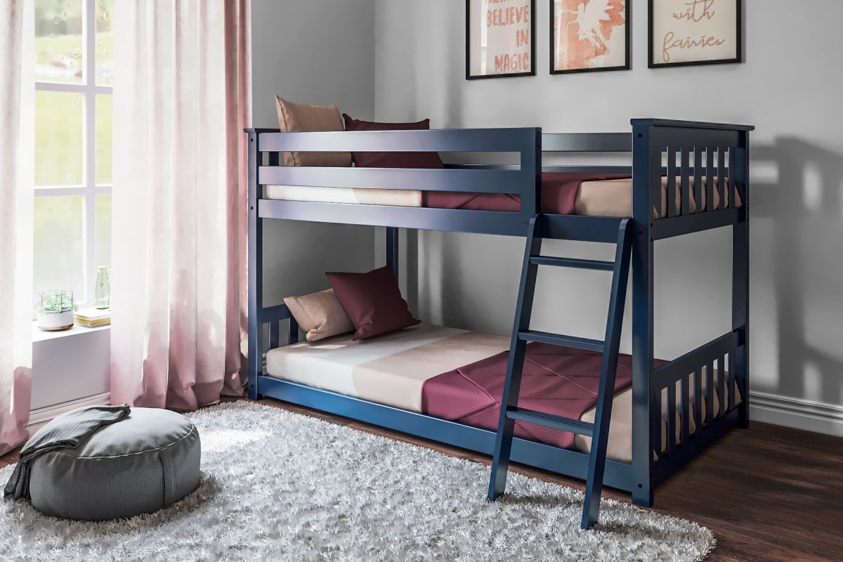 Sorry, the Charlie Blue Twin-Over-Twin Low Bunk Bed is no longer available. We've left this page up for reference only. Check out the great alternatives on this page or call 248-481-2208 or Chat with a Gardner White Sales Specialist about similar products.