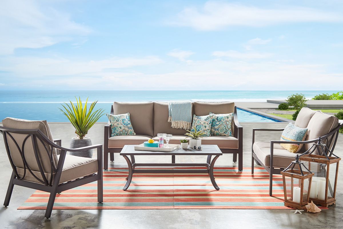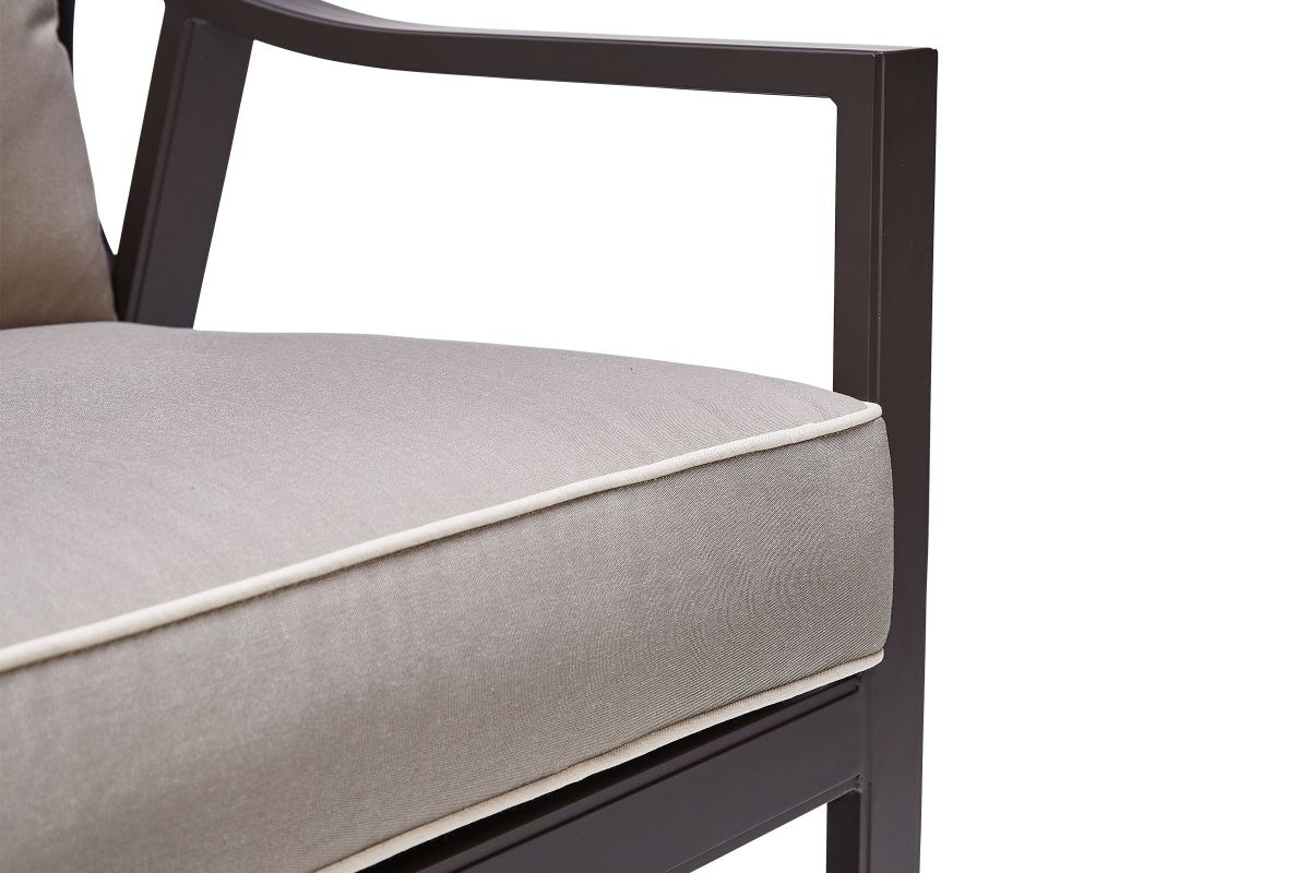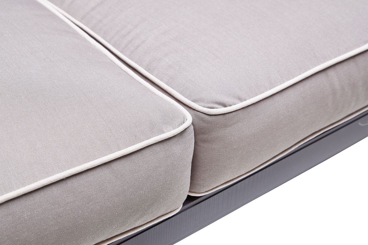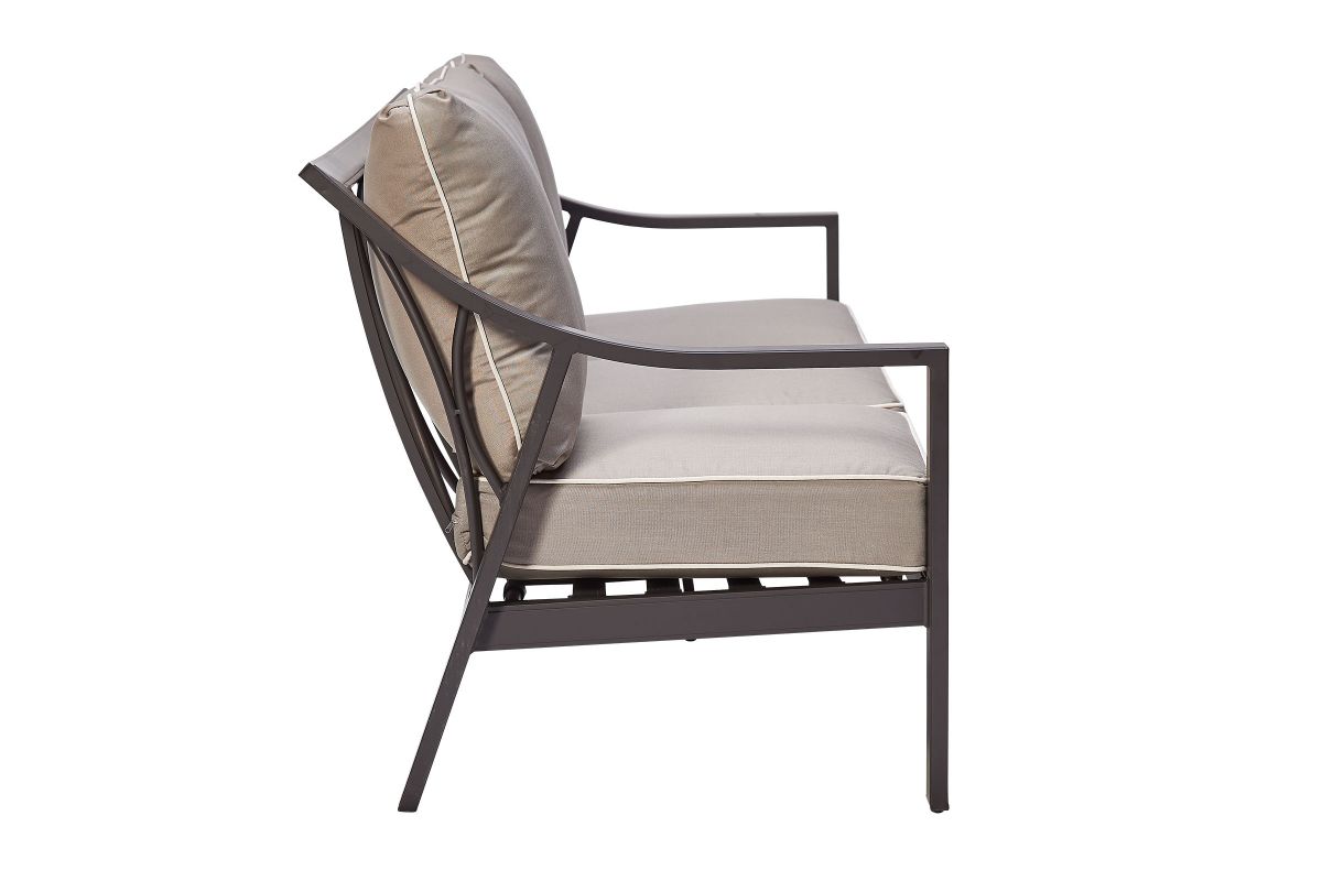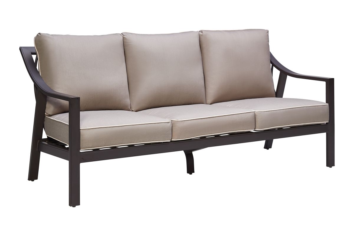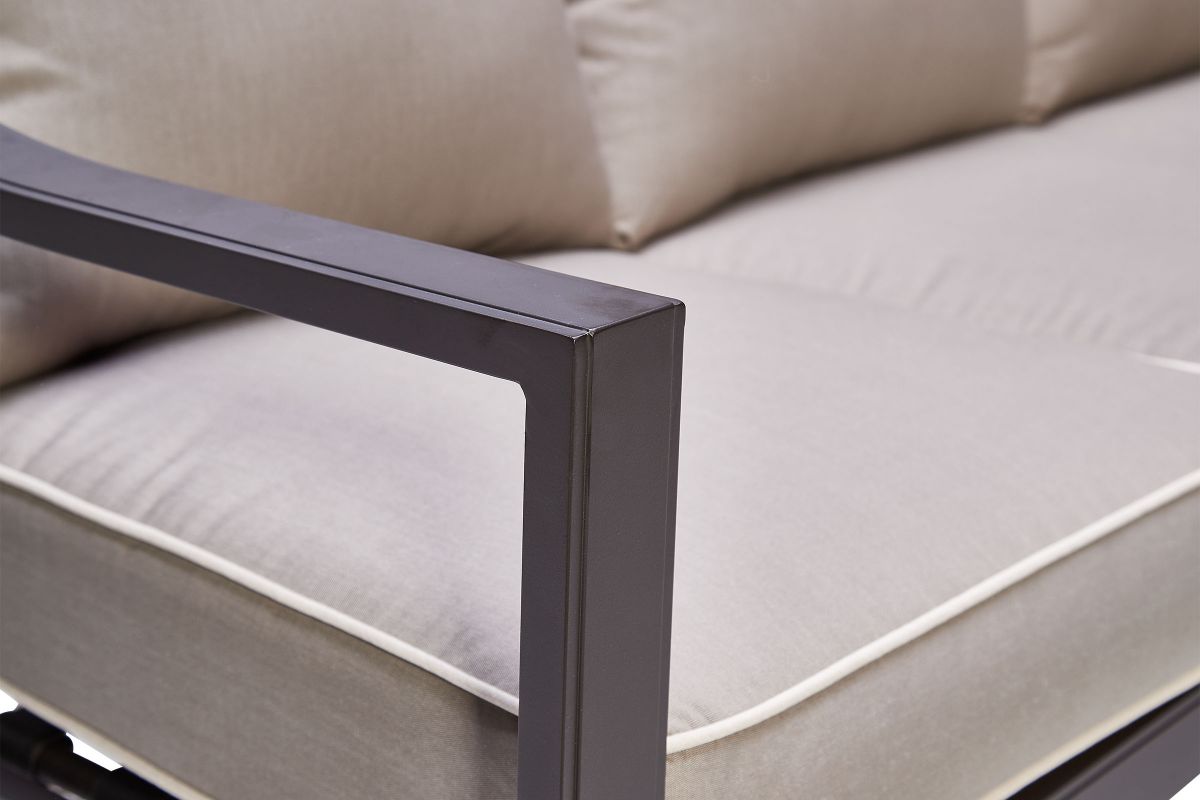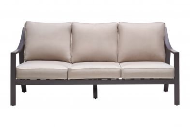Bring that breezy, outdoor feeling to your back yard with the Genoa Patio Sofa. This decor update is the perfect universal sofa for front patios or back decks. Crafted from a weather and rust resistant aluminum frame with SPF solar protected fabric cushions, this sofa is stylish and built to last. With the Genoa Patio Sofa, your new favorite spot in your home may just be on your porch or patio.