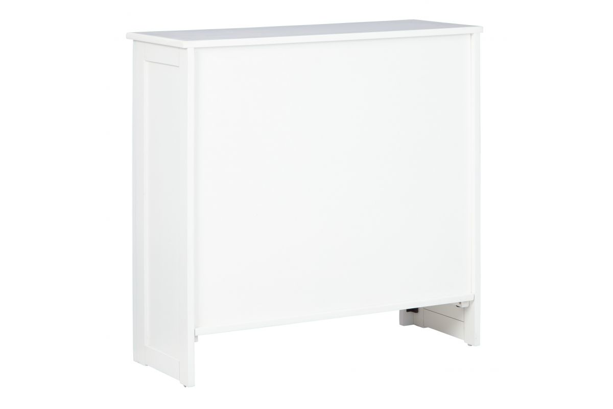 - Made of solid and engineered wood in white finish