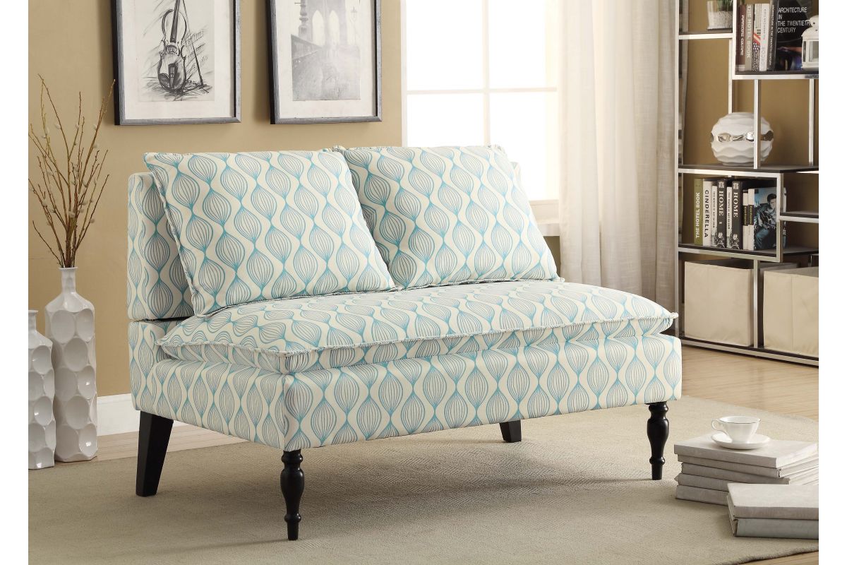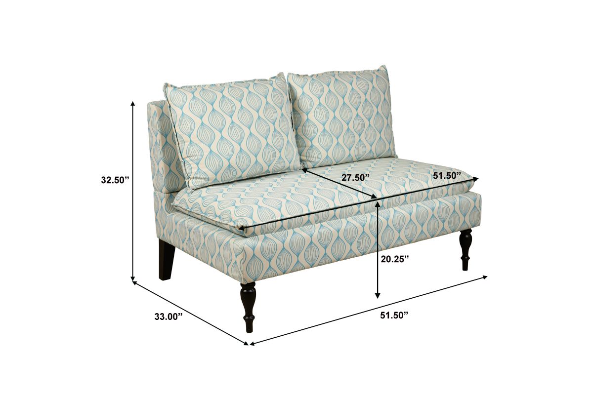 Sorry, the Dual Pillow Back Settee in Ogee Pattern Blue is no longer available. We've left this page up for reference only. Check out the great alternatives on this page or call 248-481-2208 or Chat with a Gardner White Sales Specialist about similar products.