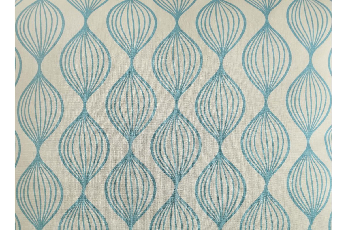- Viscose-blend fabric decorated with a unique ogee geometric design in soft blue and cream