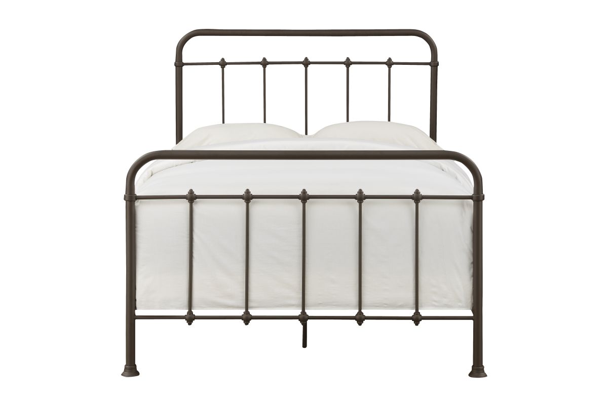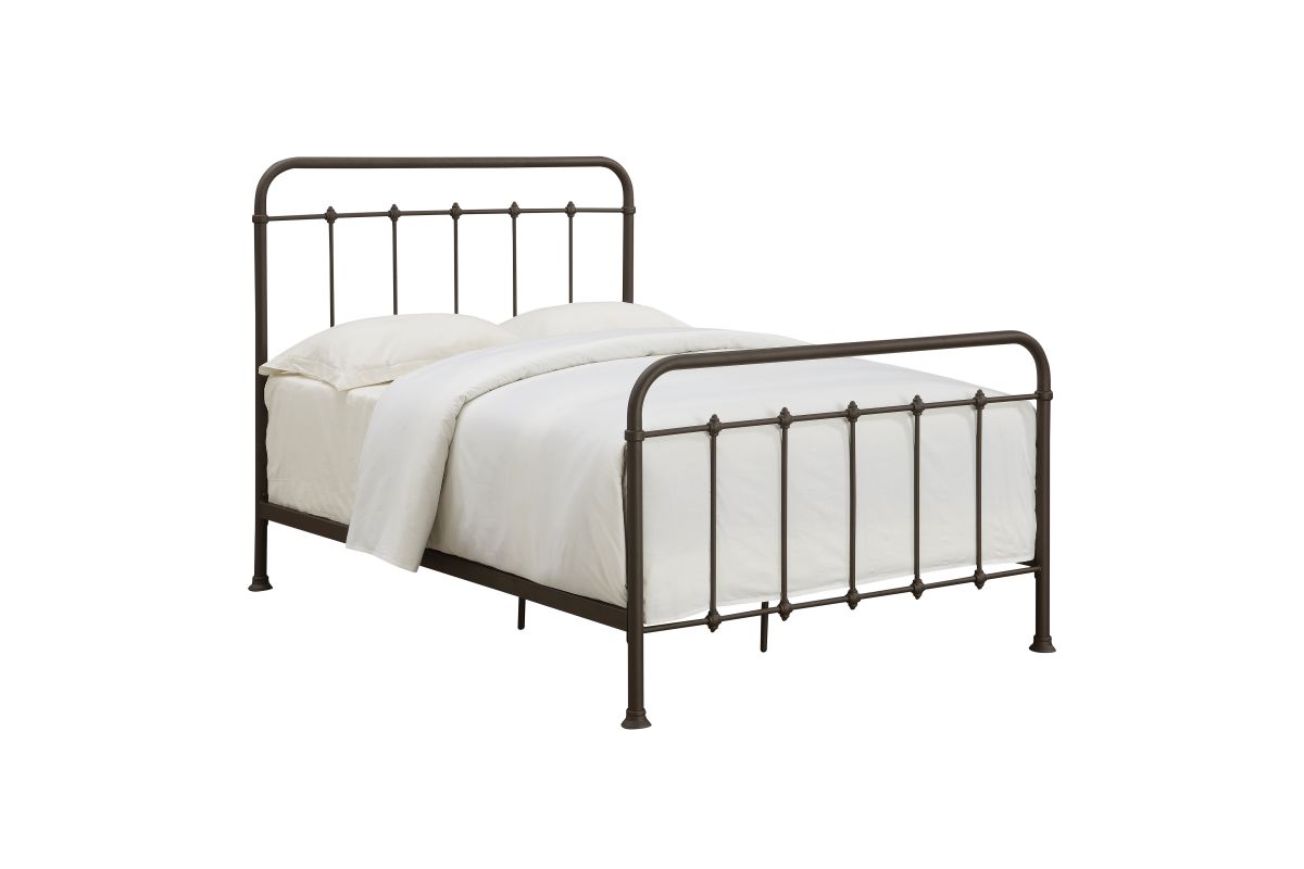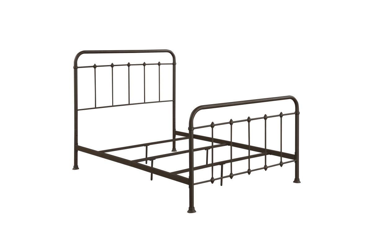 Delicate spires and unique pass-through finial accents create headboard and footboard silhouettes that are both substantial and airy. The aged appearance comes courtesy of a brown powder-coated finish for years of durable performance. The flared end caps on the legs deliver stability, and three adjustable side rail heights allow you to customize the look of your finished bed. Simply add a mattress and box spring to the footed metal slats and enjoy a modern twist on old-fashioned charm each time you dream.