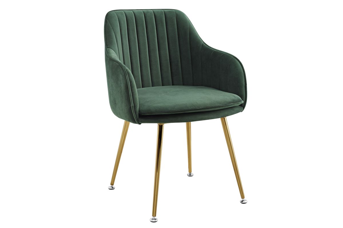 - Built with soft foam and stain-resistant fabric, this high-backed chair is the perfect accent to a living room, home office, or entryway. Thin, gold metal legs complement the smooth velvet material. This piece will be a unique and sophisticated addition to your home, adding luxury and elegance to your home.
