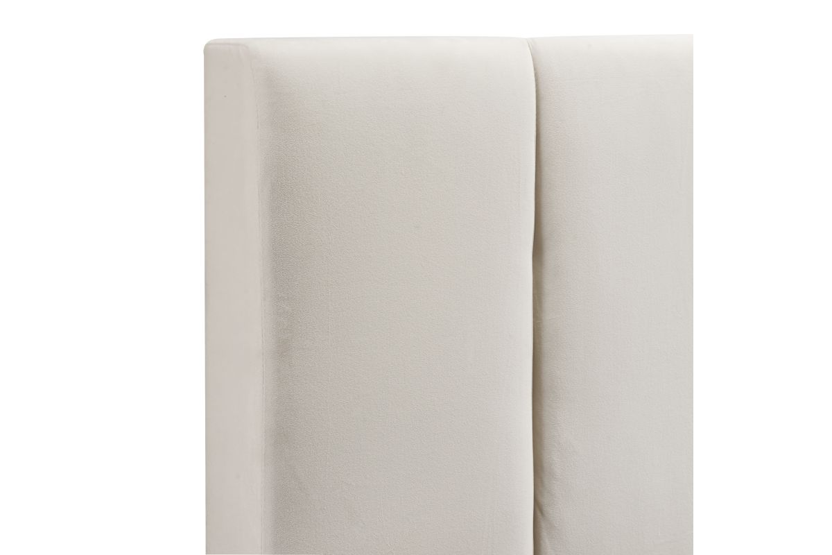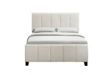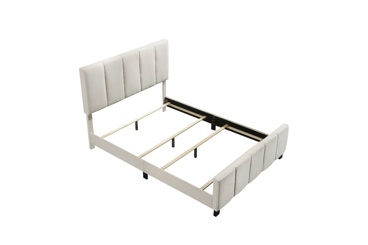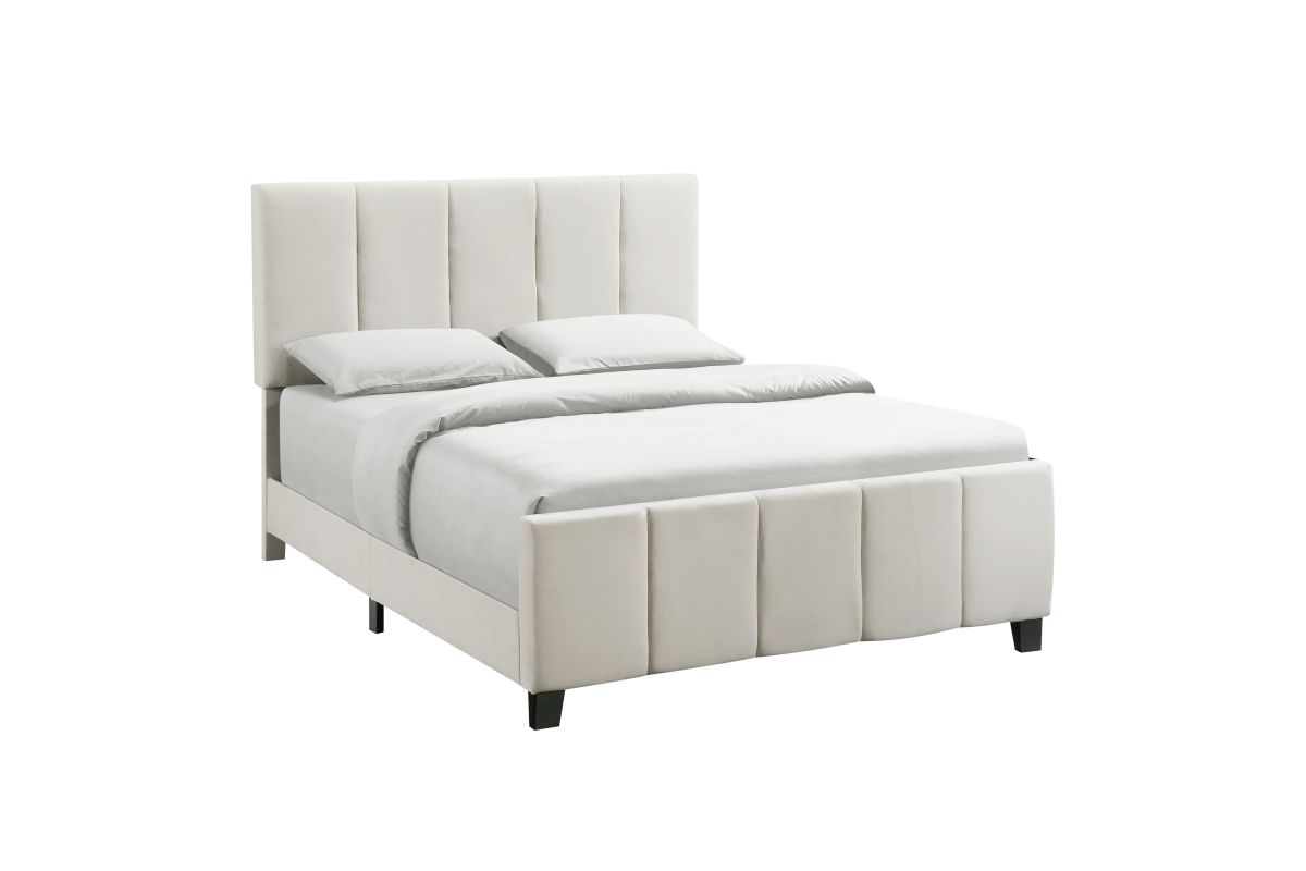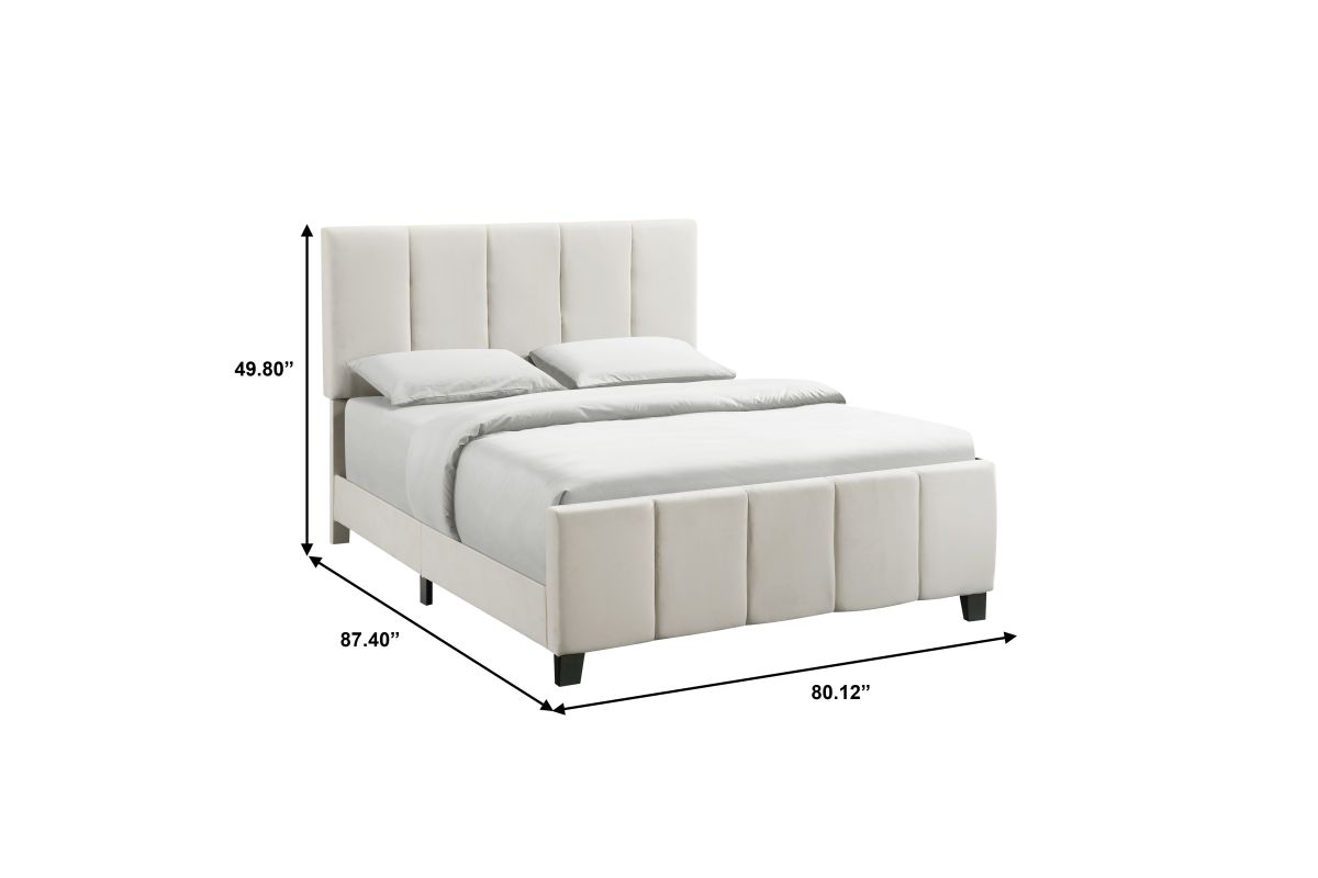 - With its transitional silhouette and modern channeling, this upholstered bed fits seamlessly into a wide variety of bedroom decors. A sophisticated ivory white velvet fabric will pull together any modern and contemporary style. This stylish bed requires a box spring, which added height elevates the look.